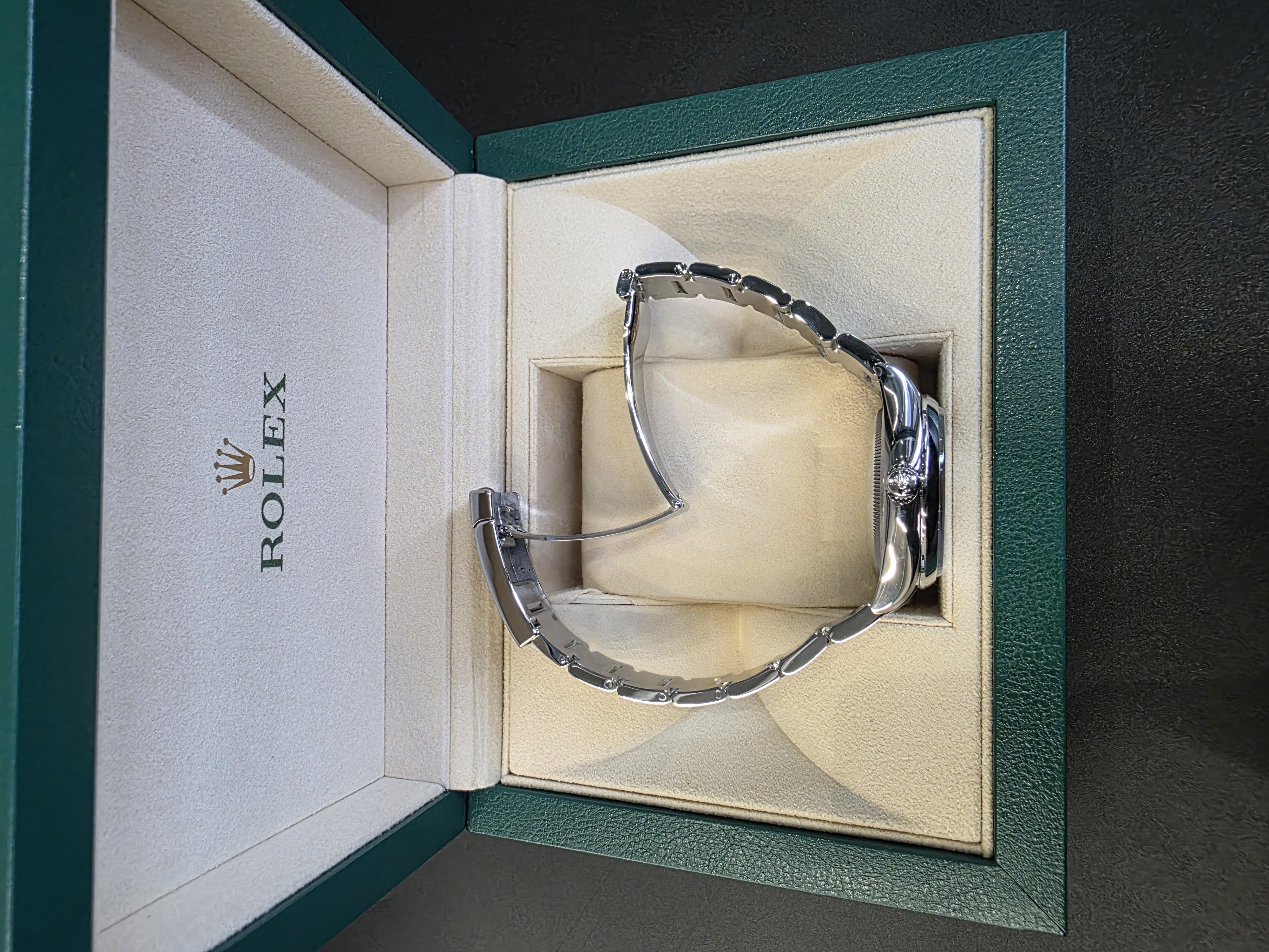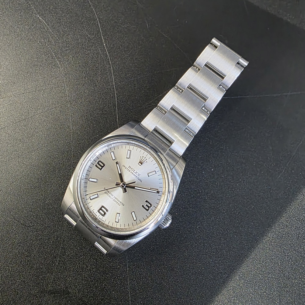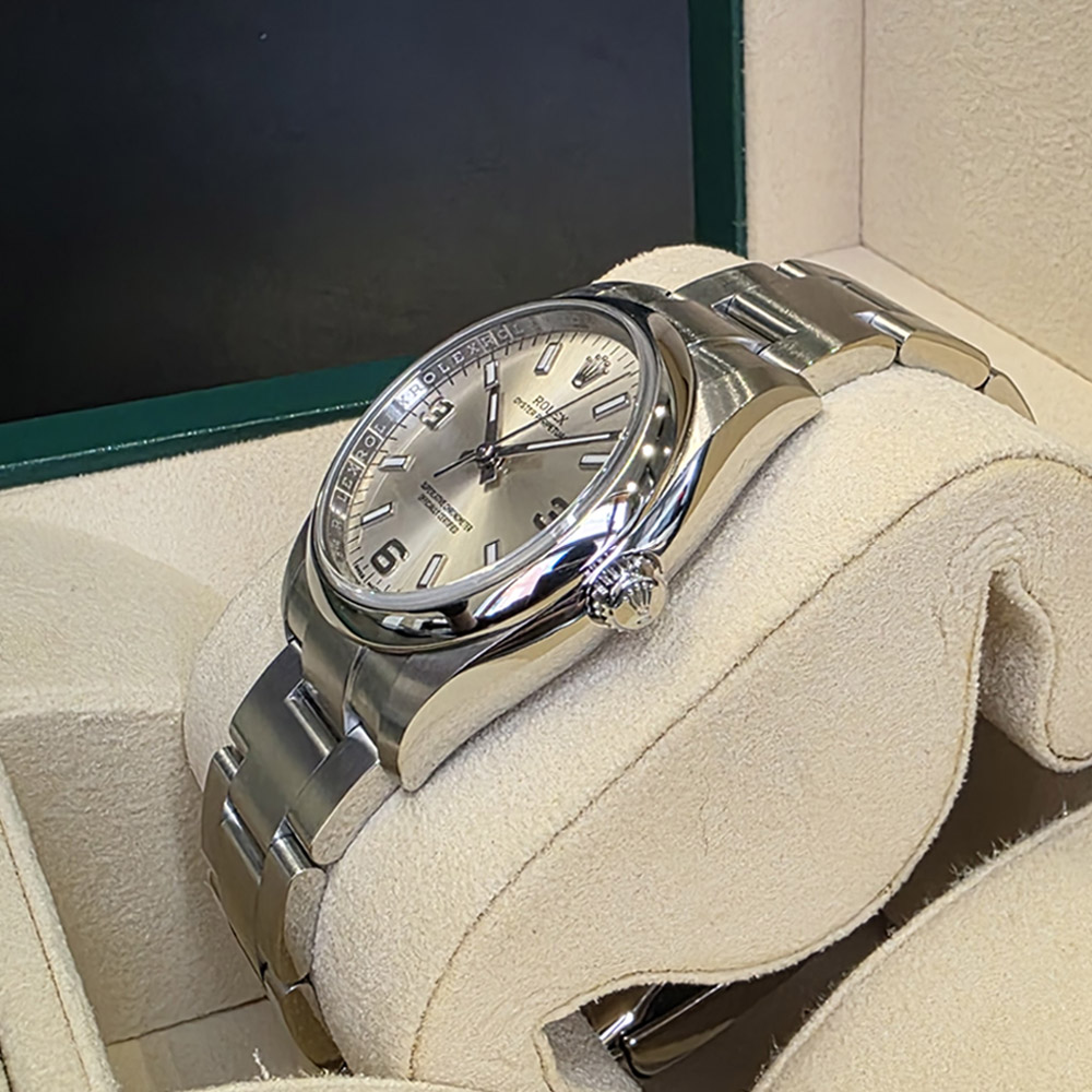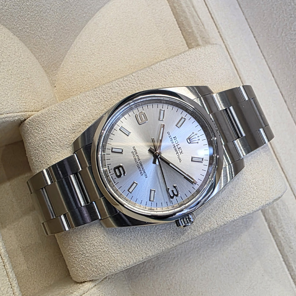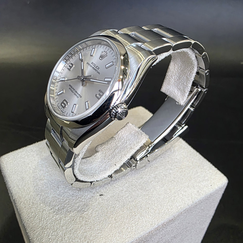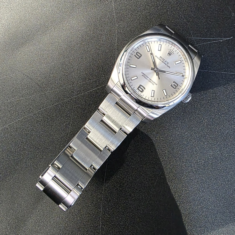 롤렉스 오이스터 퍼페츄얼 34mm 실버 스틸 114200 구매년도 : 2017 상품구성 : 풀구성 자연스러운 사용감이 있는 깨끗한 상품입니다. 사용감은 있지만 관리가 잘된 좋은 컨디션의 상품입니다.