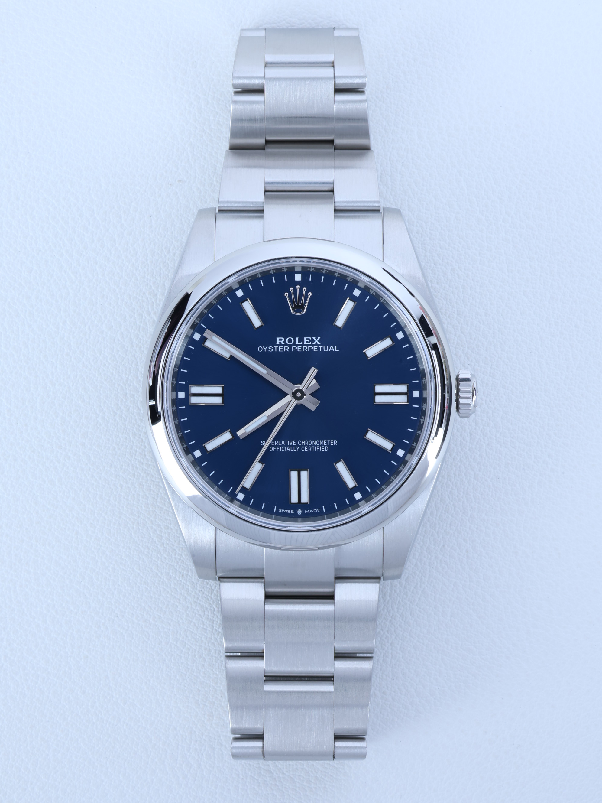 OysterPerpetual41,M124300-0003,오이스터퍼페추얼,오이스터퍼페츄얼,오피,OP,예물시계추천,오이스터브레이슬릿,졸업선물,브라이트블루,스테인레스스틸,사파이어크리스탈,41mm,Rolex,브라이트 블루,스테인리스 스틸,오이스터 브레이슬릿,사파이어 크리스탈,Stainless steel,Folding clasp,Baton indices,Hour + minute + seconds,Oyster Perpetual 41,오이스터 퍼페츄얼 41,Oyster Perpetual,롤렉스,웨딩