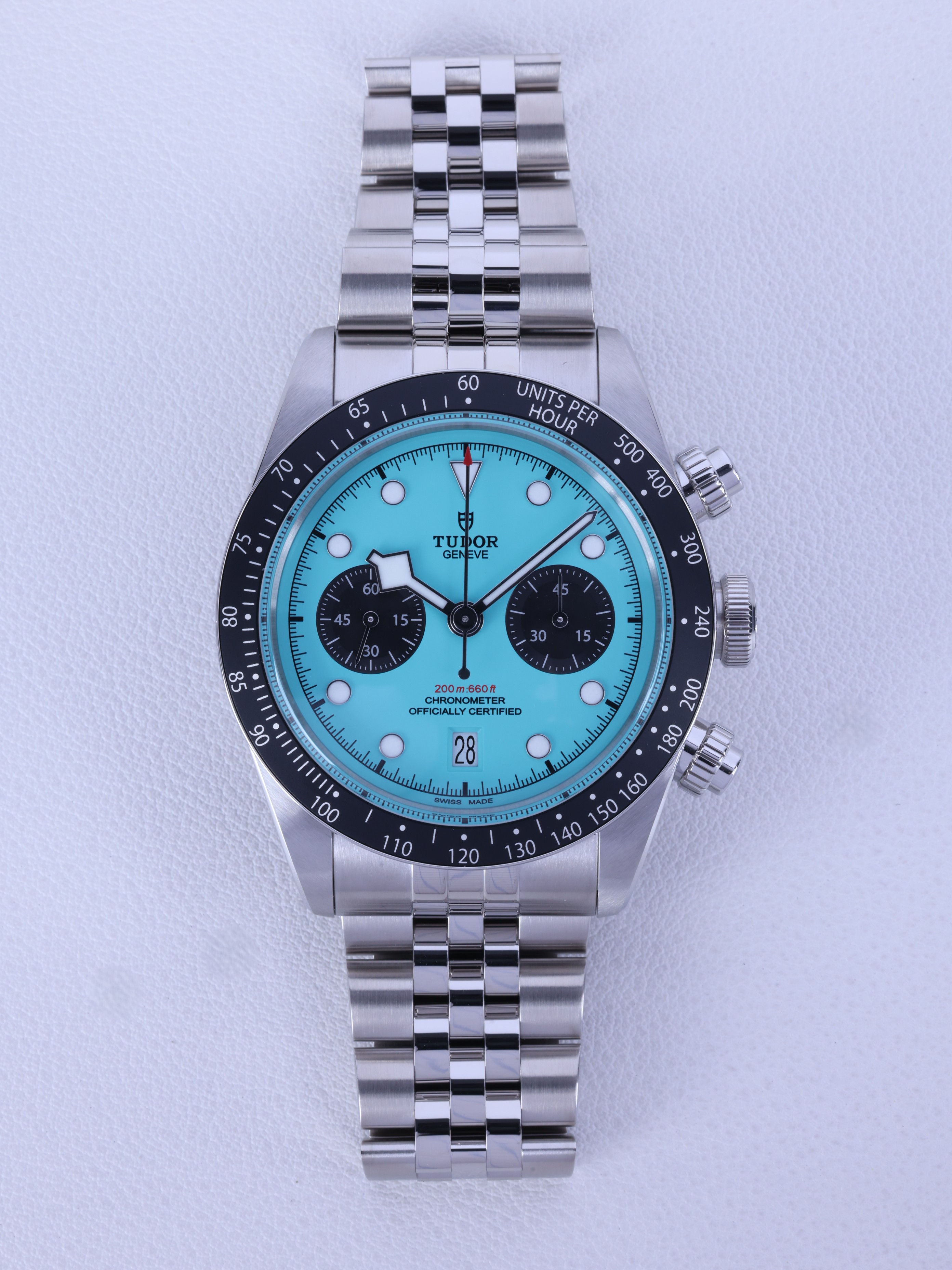 M79360N-0024,Tudor Daring Watches Black Bay Chrono Chronograph Flamingo Blue 79360N,튜더 데어링 블랙베이 블랙 베이 크로노 크로노그래프 플라밍고 플래밍고 블루 터콰이즈 크로노 크로노그래프 79360N,플라밍고 블루,스테인리스 스틸,41mm,타키미터,셀프 와인딩,Stainless steel,Folding clasp,Date,chronograph subdial,small seconds / applied hour markers,Black Bay Chrono,블랙 베이 크로노,Tudor,튜더,Date, chronograph subdial, small seconds / applied hour markers