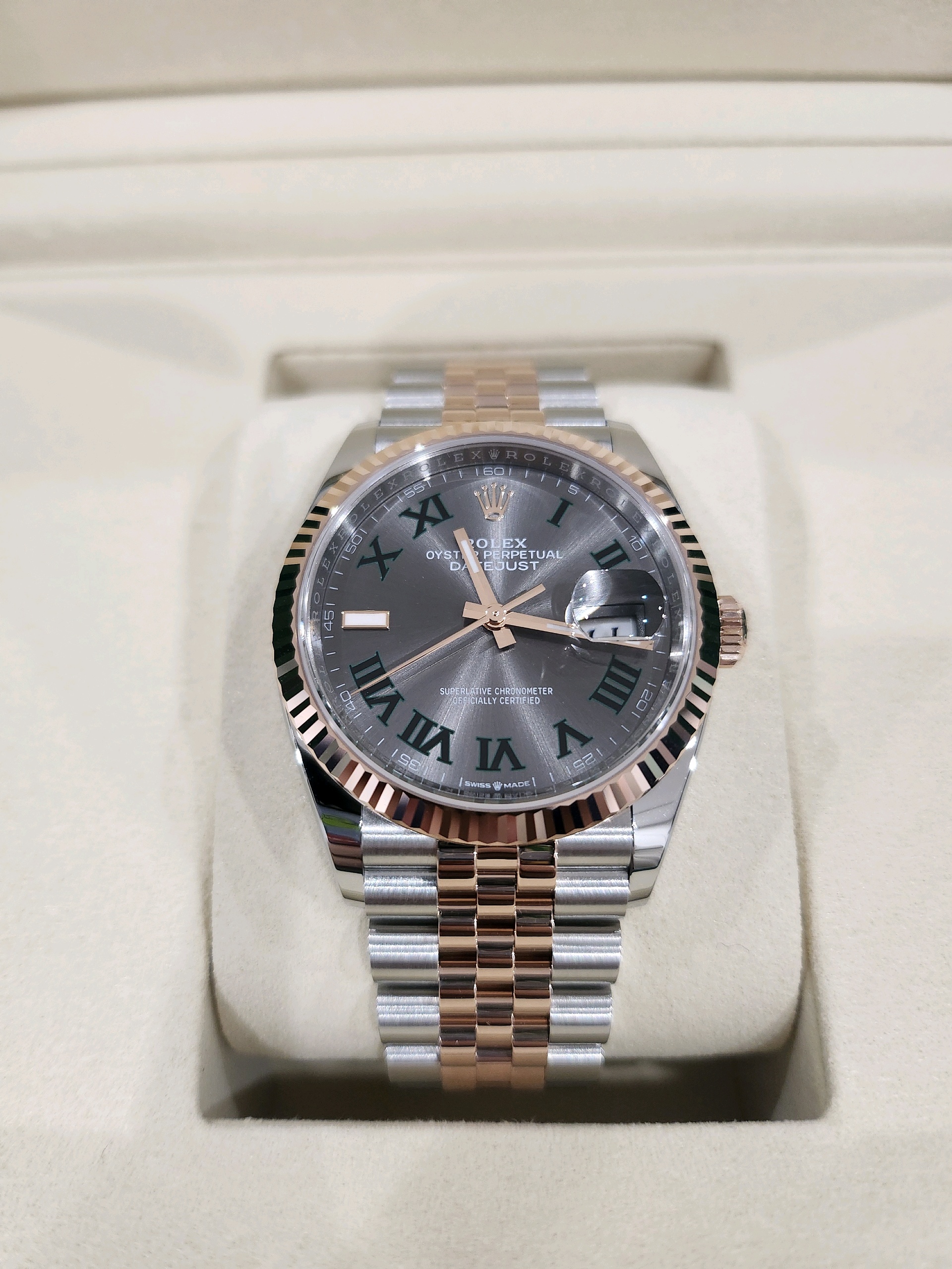 datejust36,126231,m126231-0029,슬레이트,로만,스테인레스 스틸 + 에버로즈 골드,쥬빌리 브레이슬릿,사파이어 크리스탈,36mm,데이트저스트,데이저스트,데이트,에버로즈골드,로즈골드,로골,롤레조,콤비,윔블던,데잇저스트,데잇,예물시계 추천,쥬빌리,어버이날 선물,40대 추천,단종,로즈데이,Rolex,스테인리스 스틸,에버로즈 골드,스테인리스 스틸 + 에버로즈 골드,Switzerland,Rose gold,Folding clasp,Date / roman numeral indices,Hour + minute + seconds,Datejust 36,데이저스트 36,Datejust,롤렉스,Everose gold,남성,예물,기념일,웨딩,.그레이,폴딩 클라스프,약 20mm,원형,클래식,남녀공용,스테인리스 스틸, 에버로즈 골드