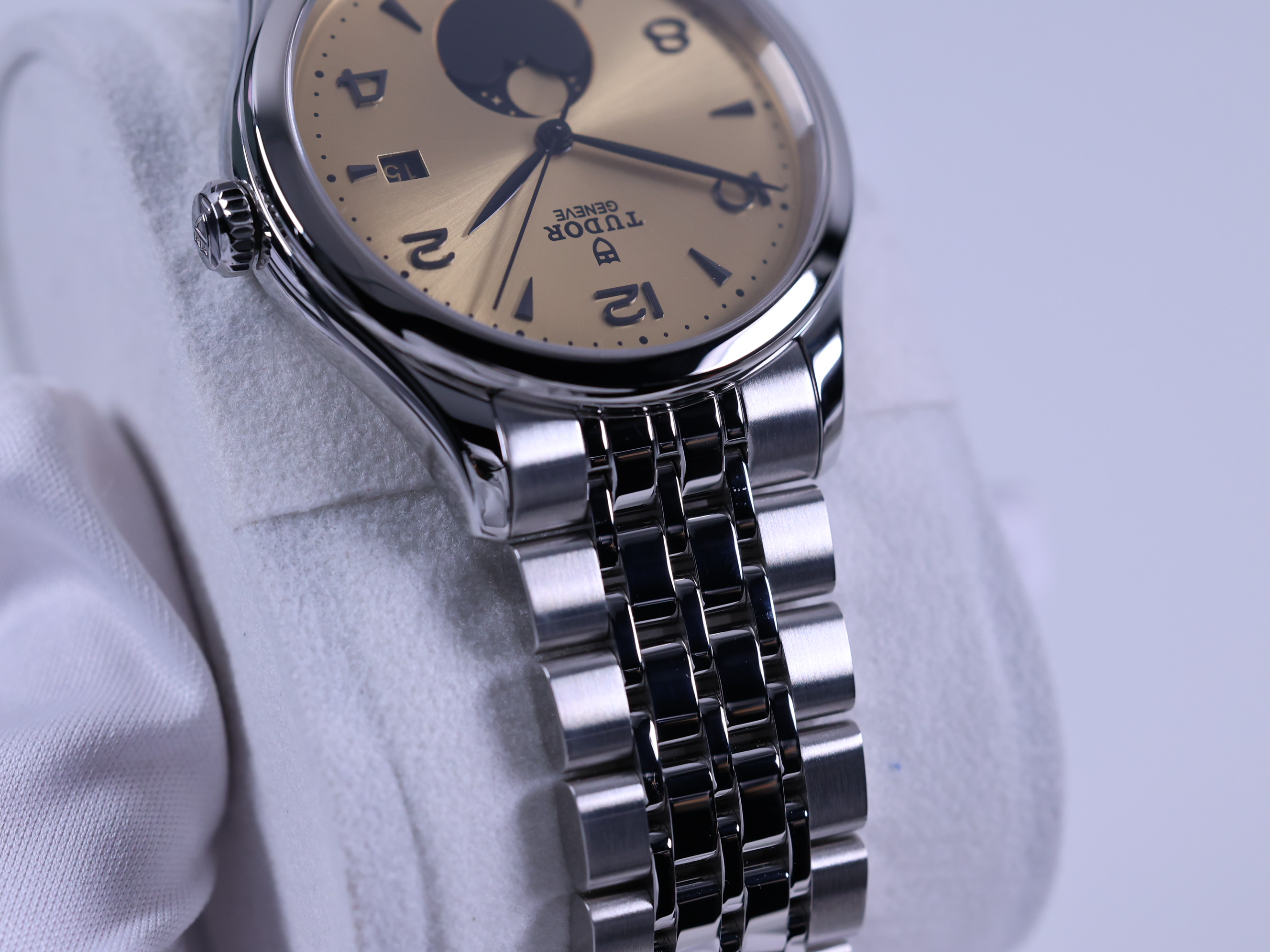 튜더 1926 루나 91560 문페이즈 스틸 샴페인 스틸,M91560-0001,0002,91560-0001,샴페인,스테인리스 스틸,브레이슬릿,39mm,셀프 와인딩,Cal. T607-9,Switzerland,Stainless steel + ceramic,Folding clasp,Date,moon phase / applied arabic numerals & dagger indices,1926 Luna,1926 루나,1926,Tudor,튜더,Date, moon phase / applied arabic numerals & dagger indices