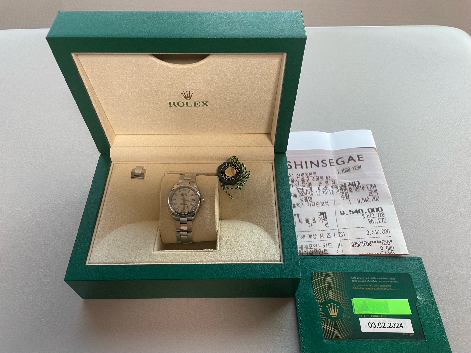 - 보증 기간: 2029년 2월까지 (롤렉스 공식 워런티 넉넉함)
