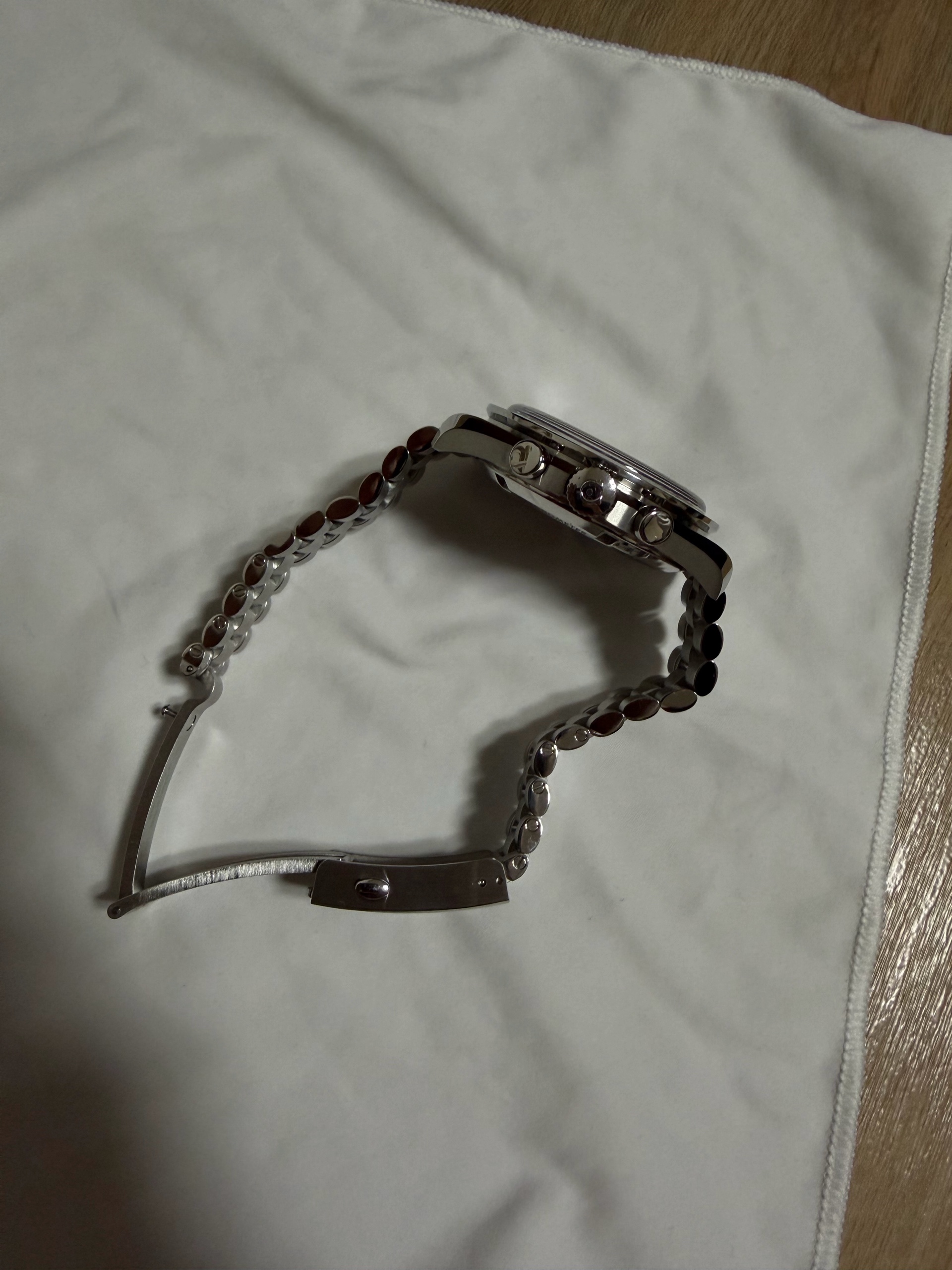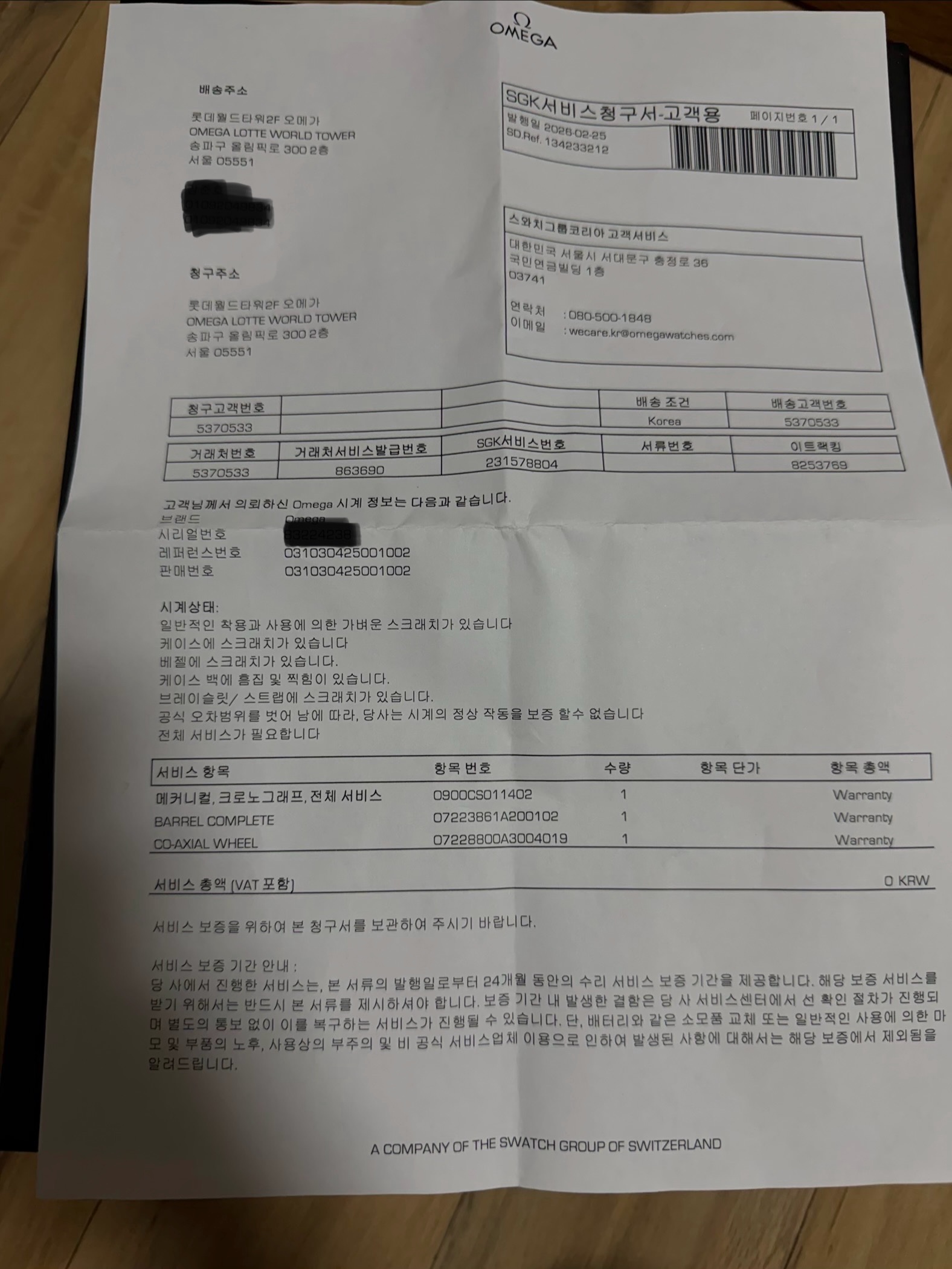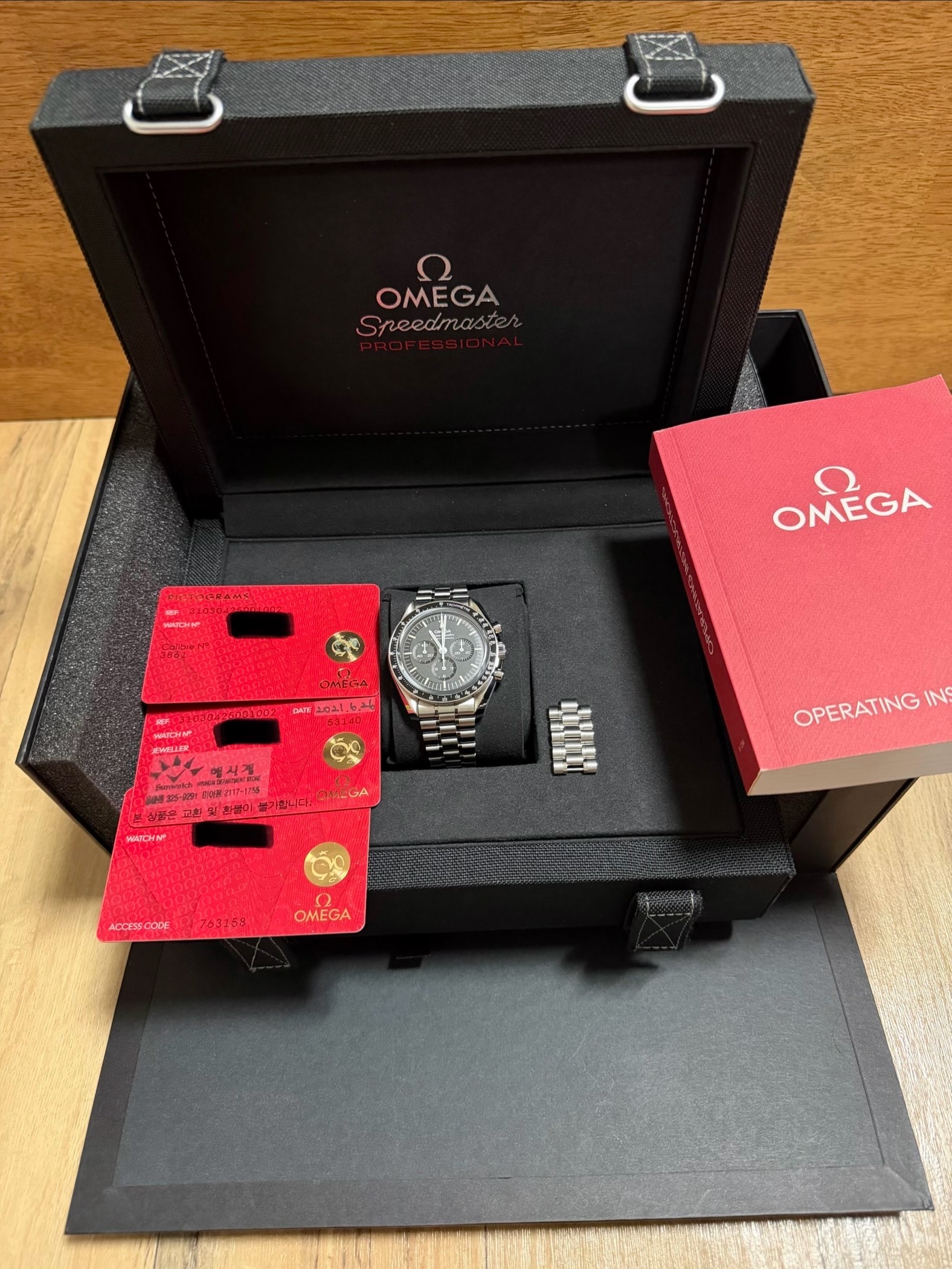 26년 2월에 오메가 정식에서 오버홀과 브레이슬릿 세척까지 마치고 한번도 착용하지 않았습니다. 2년 보증연장. 서류같이 드립니다.