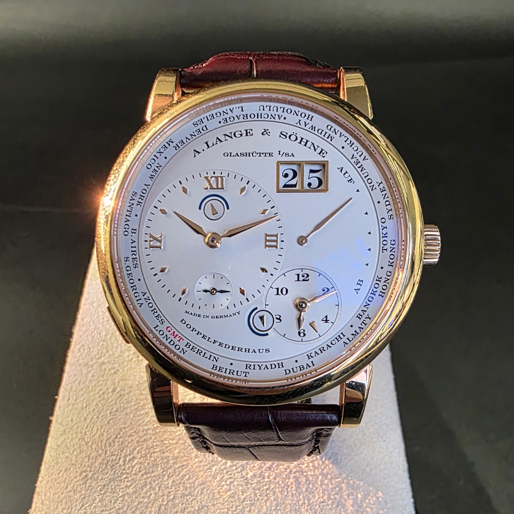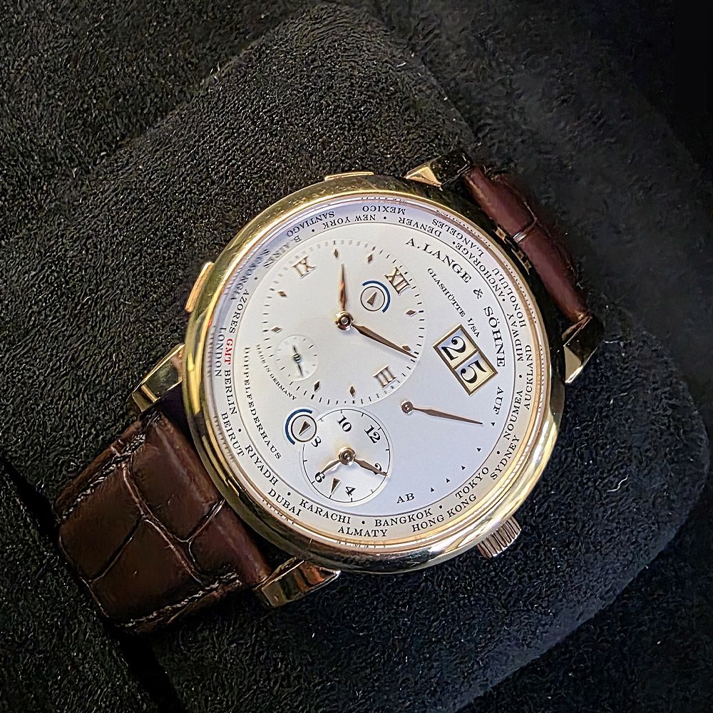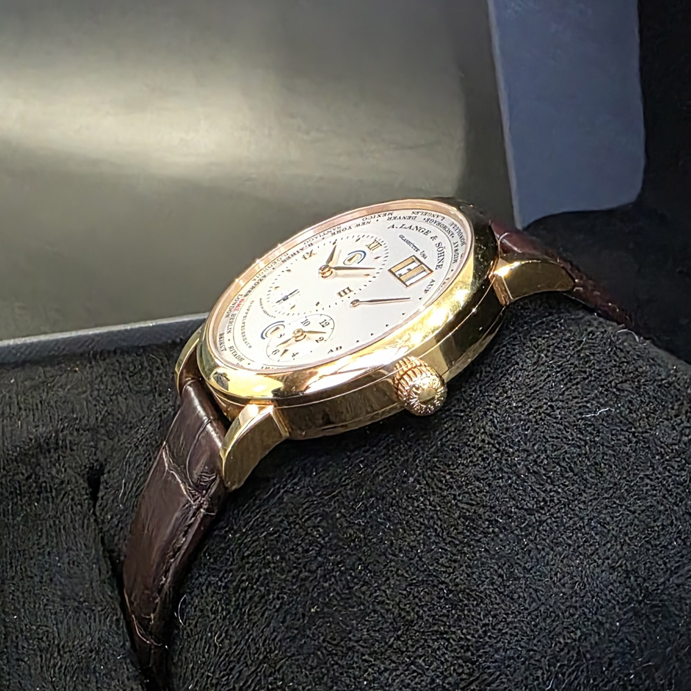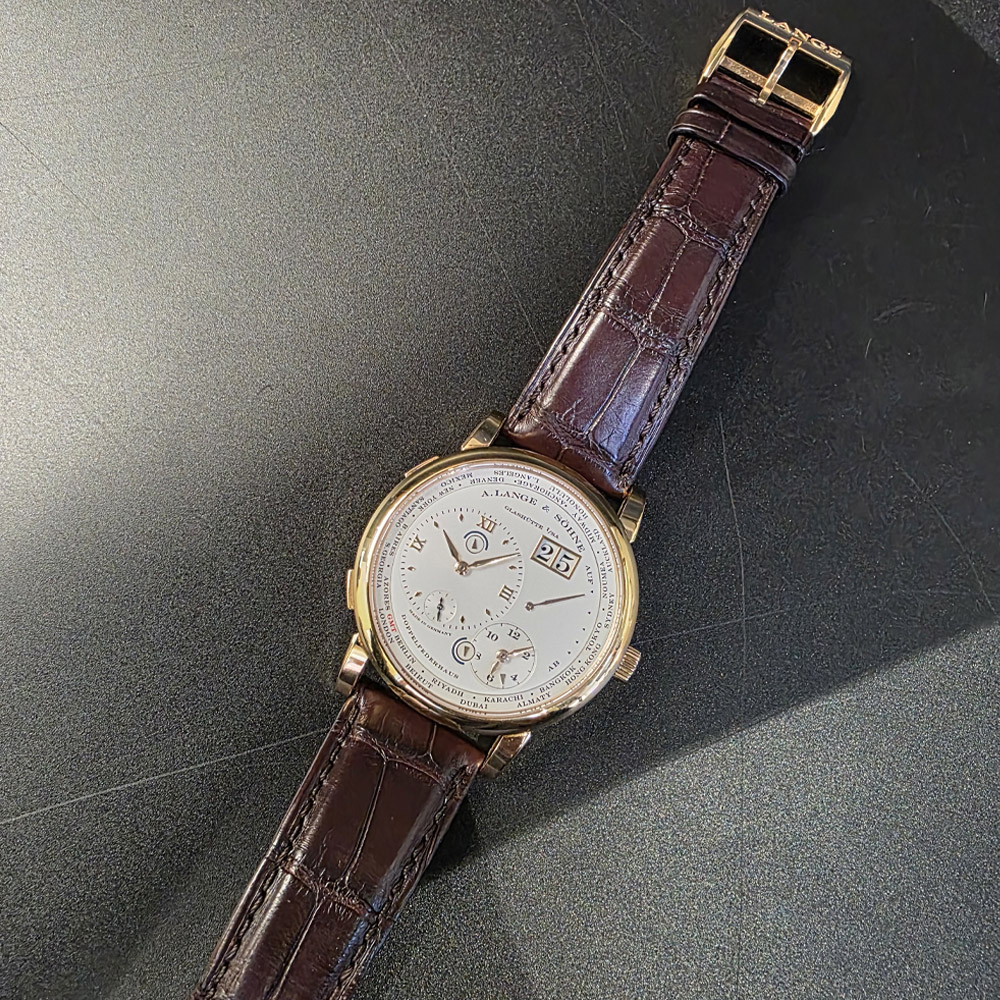 랑에1 운트 죄네 타임 존 41.9mm 로즈골드 금통 가죽스트랩 116.032