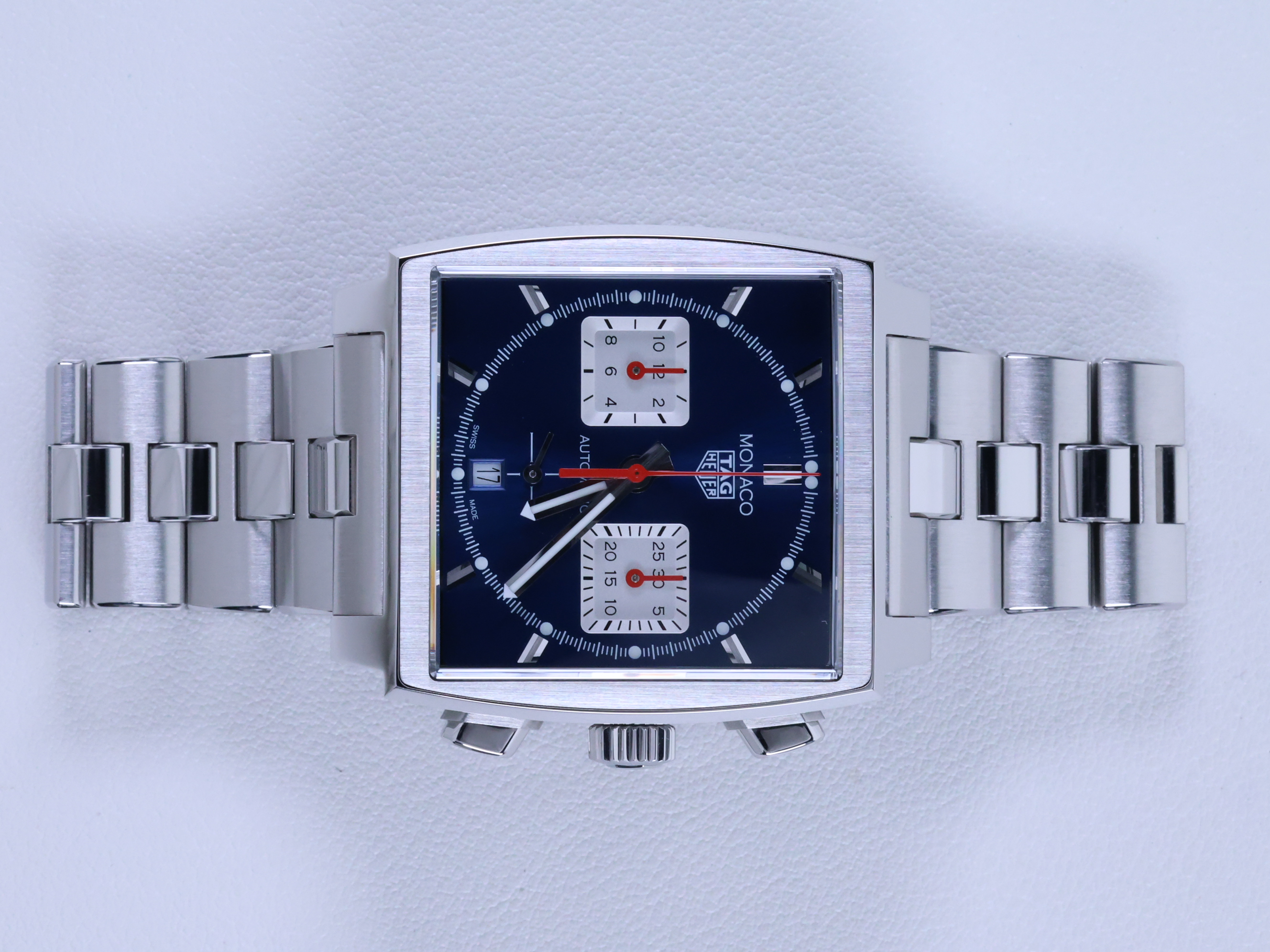 Monaco Chronograph Calibre Heuer 02,Tag Heuer Monaco Steel Bracelet,태그호이어 모나코 칼리버 호이어 02,태그호이어 모나코 스틸 브레이슬릿,Tag Heuer Monaco Heuer 02 Blue,태그호이어 모나코 블루 칼리버 호이어 02,CBL2111.BA0644,블루,사파이어 크리스탈,셀프와인딩,Monaco Calibre Heuer 02,모나코 크로노그래프 칼리버 호이어 02,Monaco,TAG Heuer,태그 호이어,셀프 와인딩,Stainless steel,Push-button folding clasp,Chronograph subdials,small seconds / applied hour markers,Hour + minute + small seconds + chronograph,투명 케이스백,Chronograph subdials, small seconds / applied hour markers