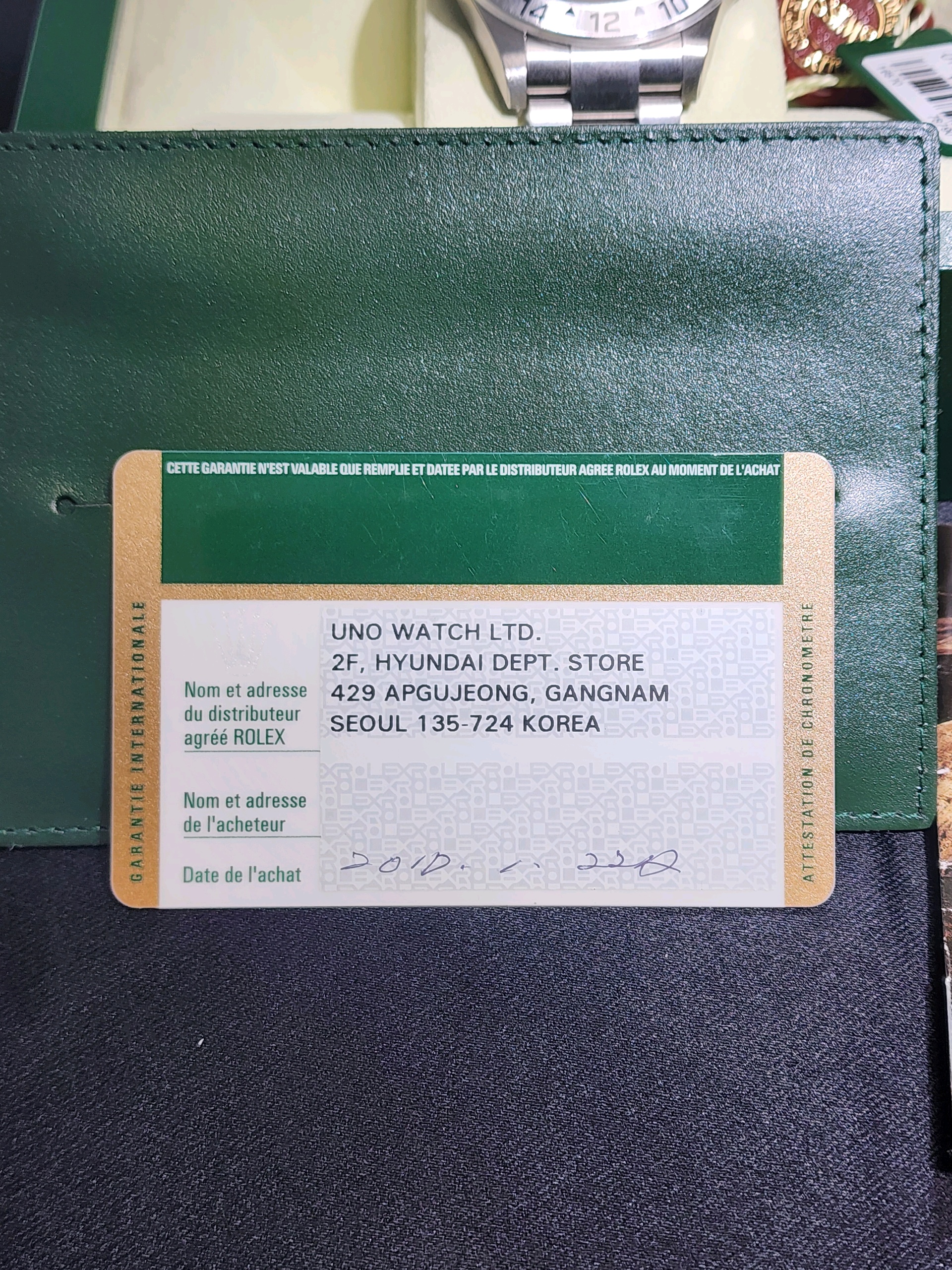 보증서는 현대백화점 압구정 UNO WATCH