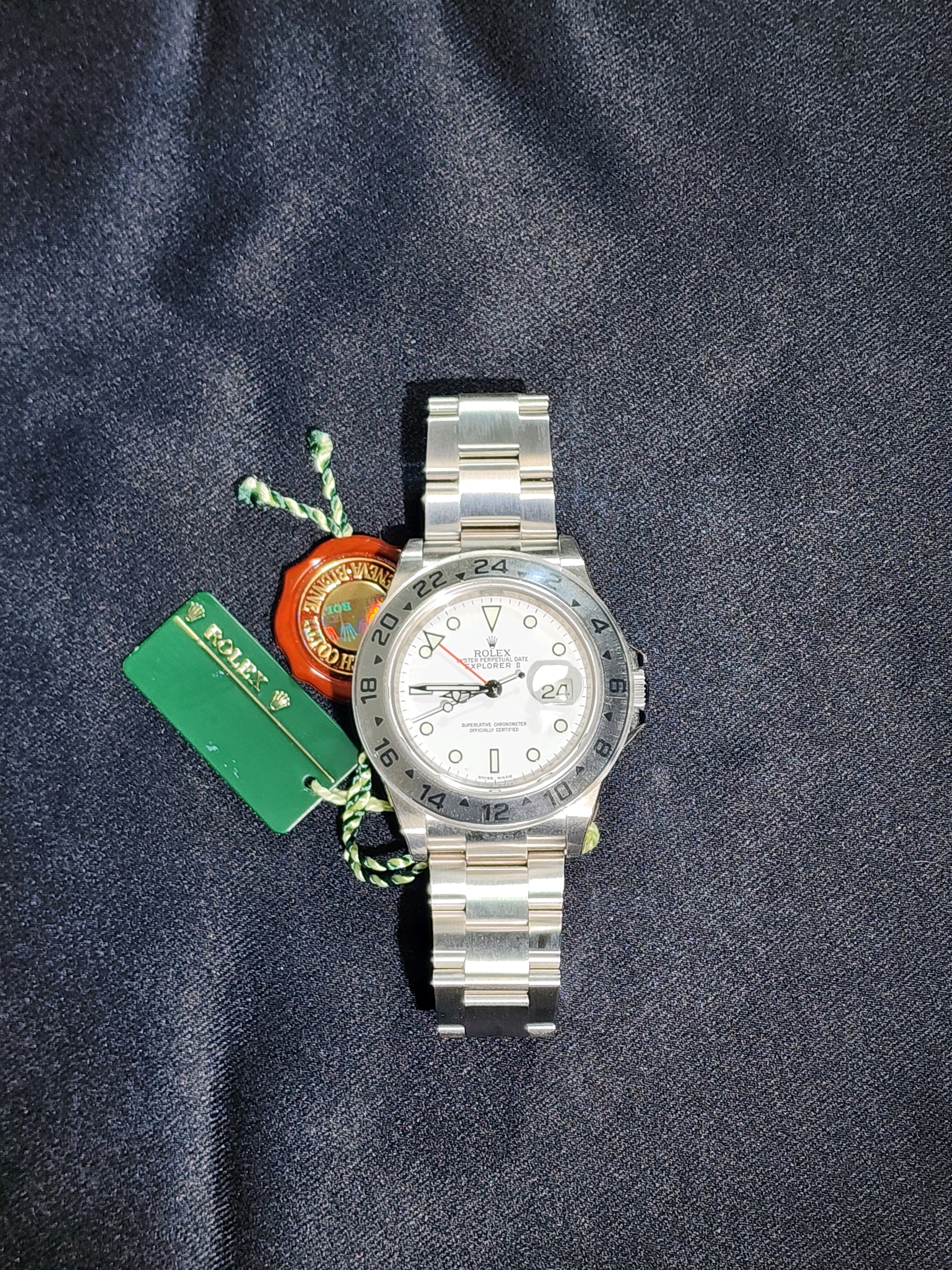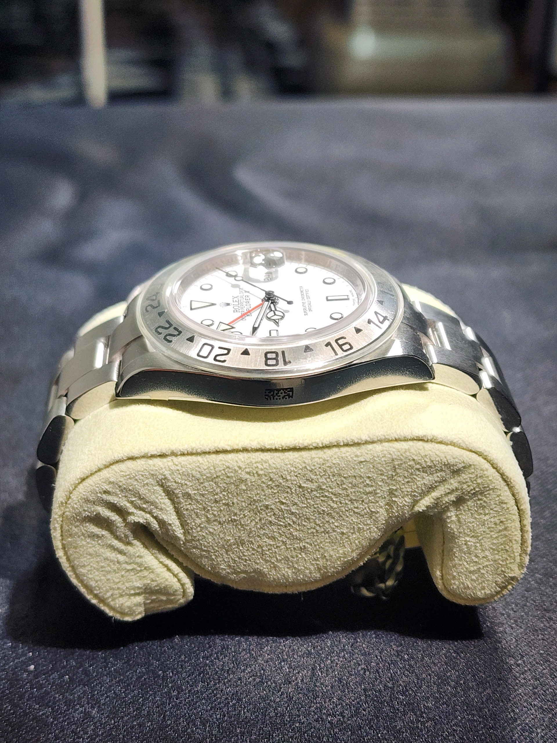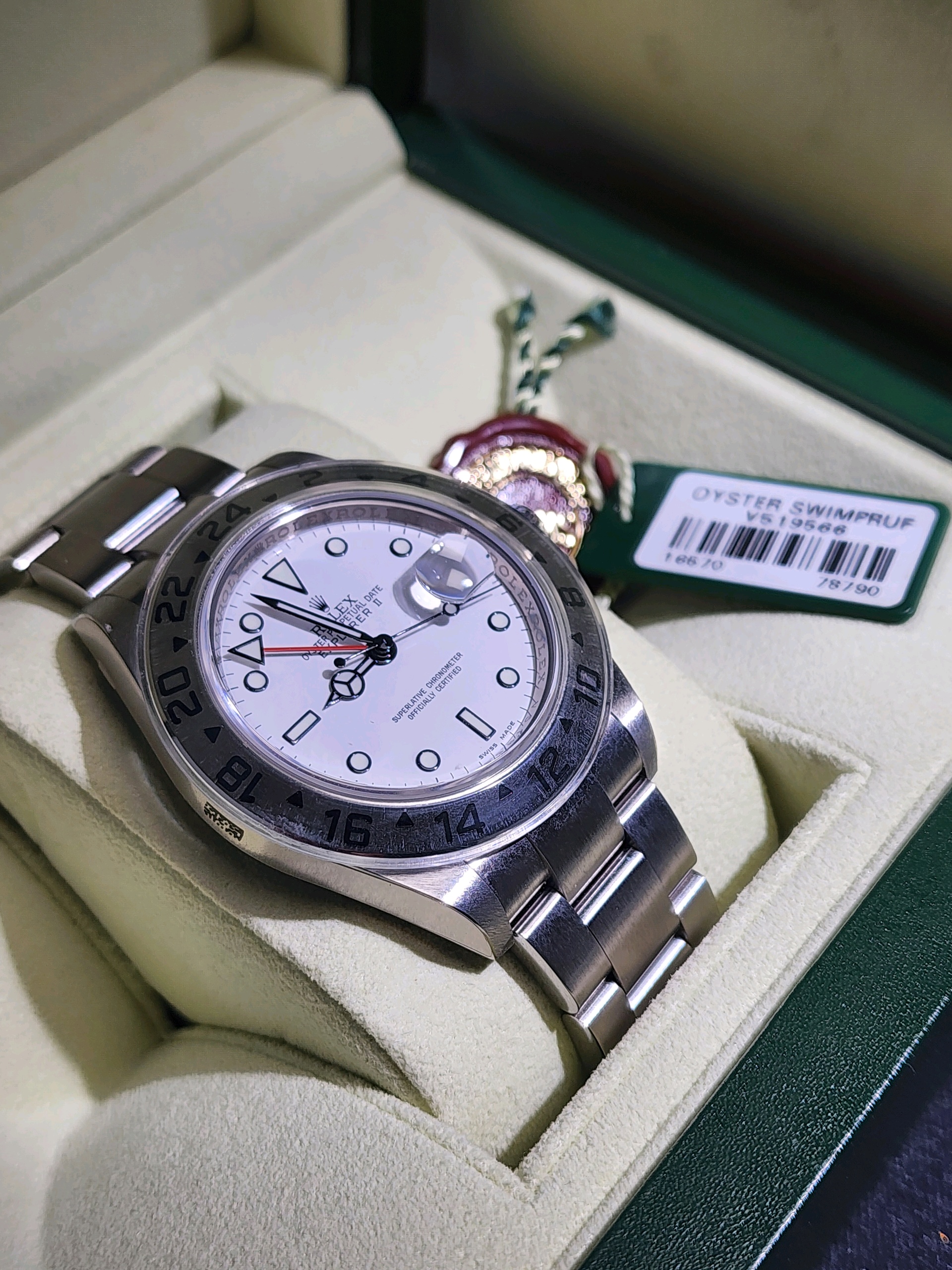 요즘 시장에서 특히 수요가 높은 모델이며, 화이트 폴라 다이얼 + 레드 GMT 핸즈 조합으로 익스2의 가장 인기 있는 구성입니다.