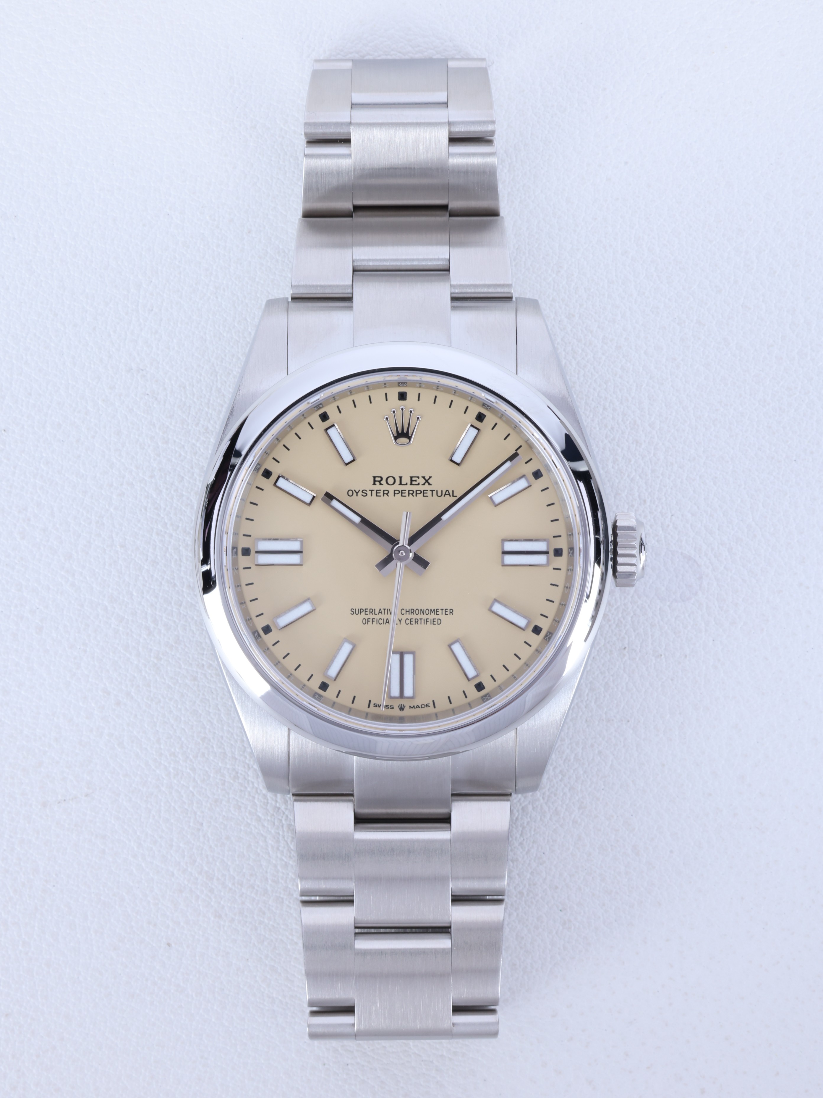 M134300-0007,134300,Rolex Oyster Perpetual OP 41 beige yellow 41mm 134300,롤렉스 로렉스 오이스터 퍼페추얼 퍼페츄얼 오피 op 41 베이지 옐로우 41mm 134300,베이지,옐로우,노랑,노란,스테인리스 스틸,오이스터 브레이슬릿,41mm,돔드,셀프 와인딩,Cal.3230,Stainless steel,Folding clasp,Baton indices,Oyster Perpetual 41,오이스터 퍼페츄얼 41,Oyster Perpetual,Rolex,롤렉스,남성,예물,웨딩,.베이지,바,폴딩 클라스프,약 21mm,원형,클래식,남성용