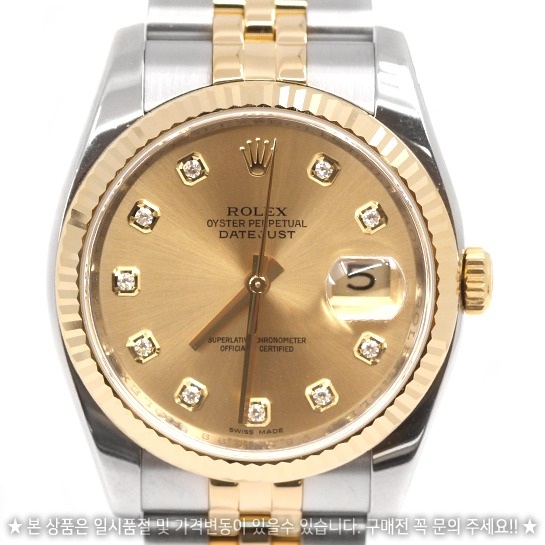 datejust36,116233,M116233-0079,샴페인,다이아몬드,스테인레스 스틸 + 옐로우 골드,쥬빌리 브레이슬릿,사파이어 크리스탈,36mm,데이트저스트,데이저스트,데이트,옐로우골드,옐골,롤레조,콤비,데잇저스트,데잇,예물시계 추천,쥬빌리,어버이날 선물,40대 추천,단종,Rolex,스테인리스 스틸,옐로우 골드,스테인리스 스틸 + 옐로우 골드,Yellow gold,Hidden folding clasp,Date / diamond-set indices,Datejust 36,데이저스트 36,Datejust,롤렉스,다이아몬드 세팅,스테인리스 스틸, 옐로우 골드,웨딩