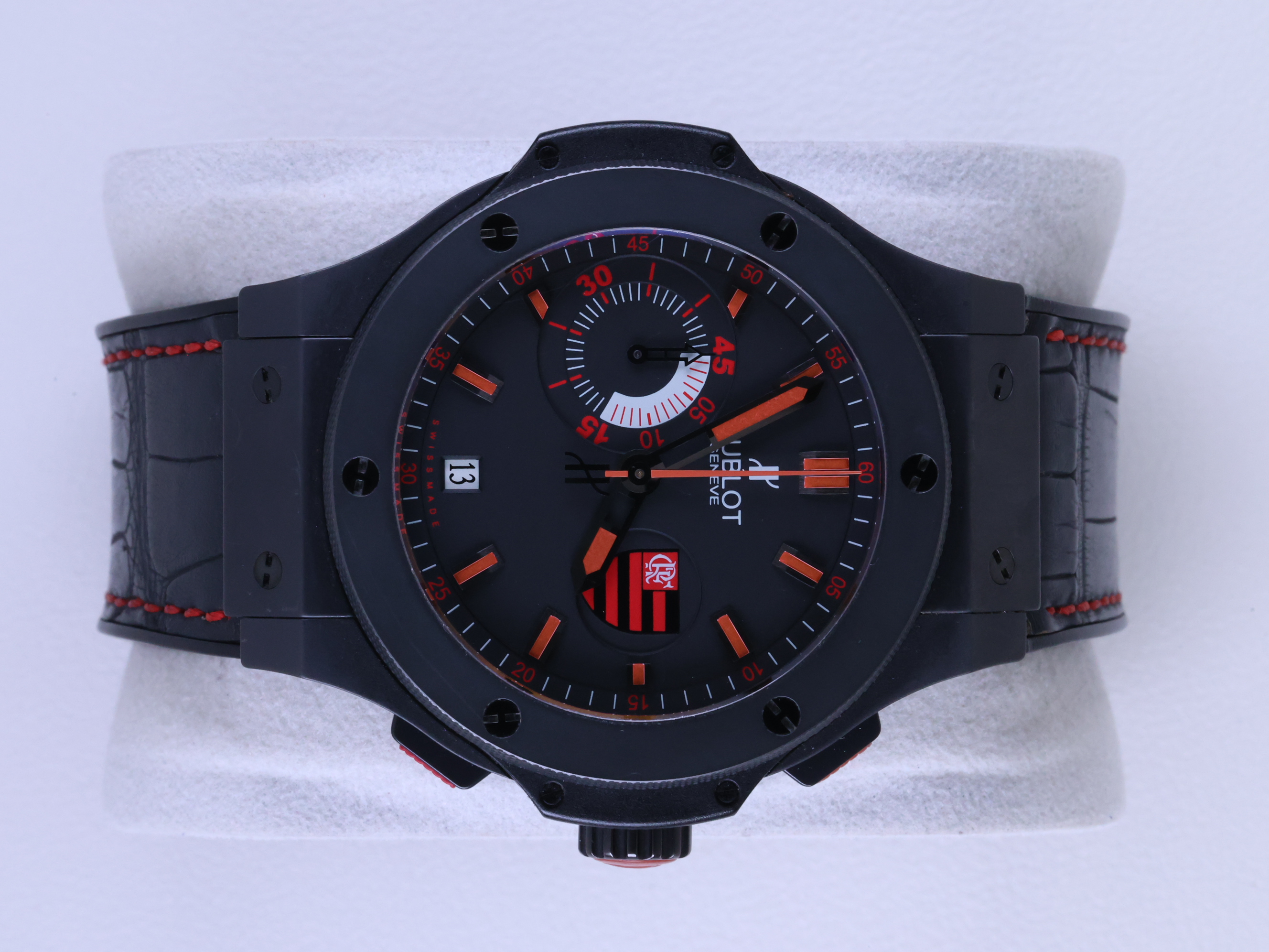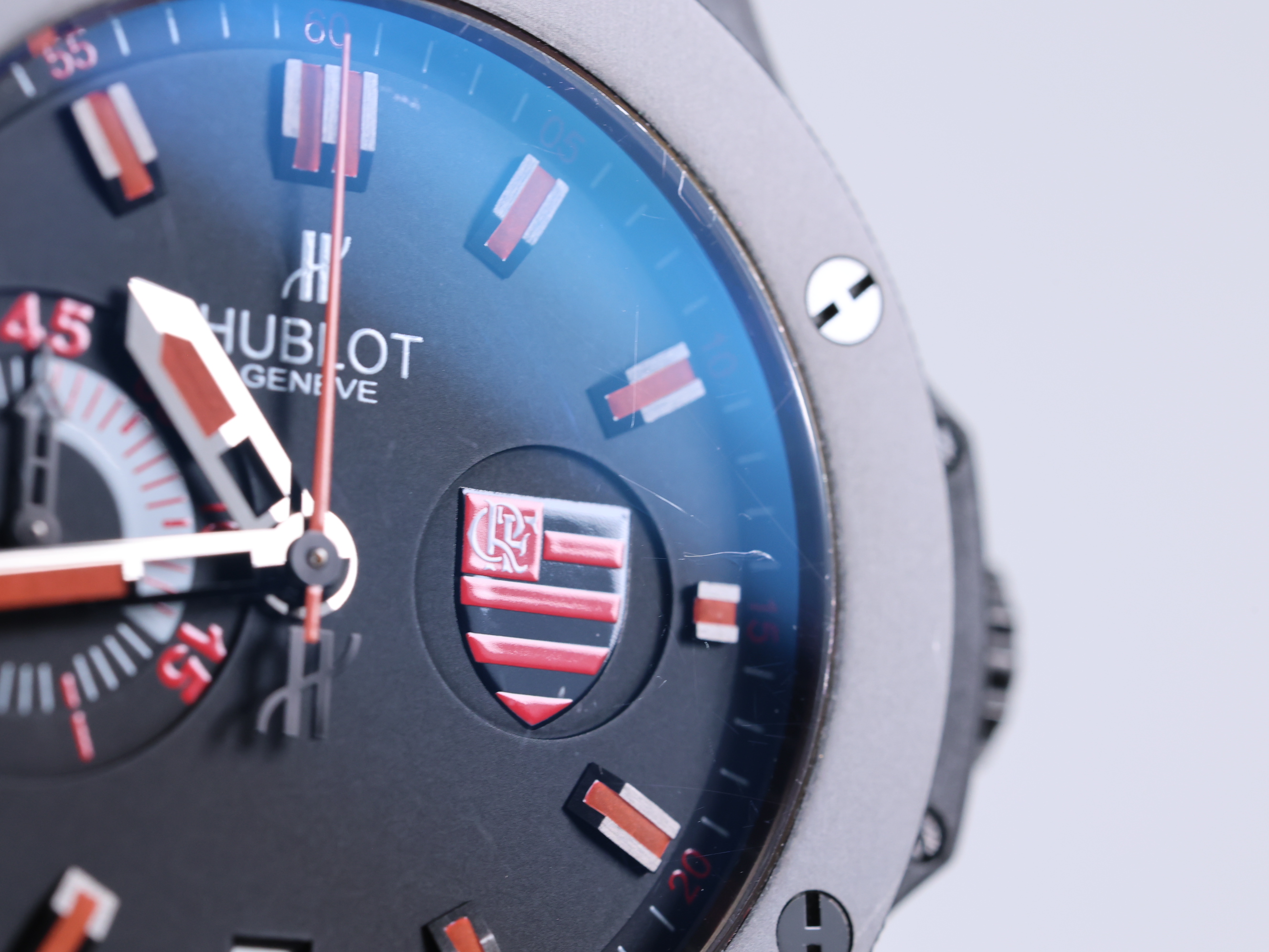 위블로 빅뱅 뱅 에어로뱅 블랙 세라믹 플라밍고 리미티드 한정판 에디션 브라질 318.CI.1123.GR.FLM11 레드 블랙 세라믹 레드 빅사이즈,블랙,Big Bang Flamengo Bang Limited Edition,빅뱅 플라밍고 리미티드 에디션,Big Bang,Hublot,위블로,big bang aero bang aerobang flamengo limited edition black ceramic black red brazil big size,세라믹,복합 레진,44.5mm,PVD steel,rubber insert,Deployant folding clasp,Date,chronograph subdial / applied baton indices,세라믹, 복합 레진,PVD steel, rubber insert,Date, chronograph subdial / applied baton indices