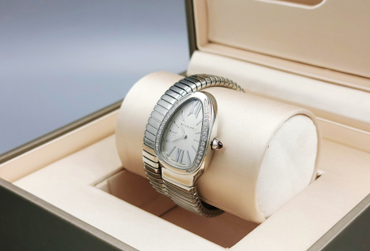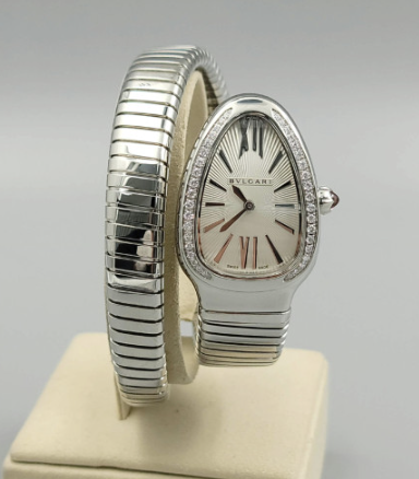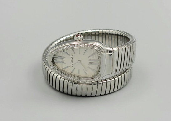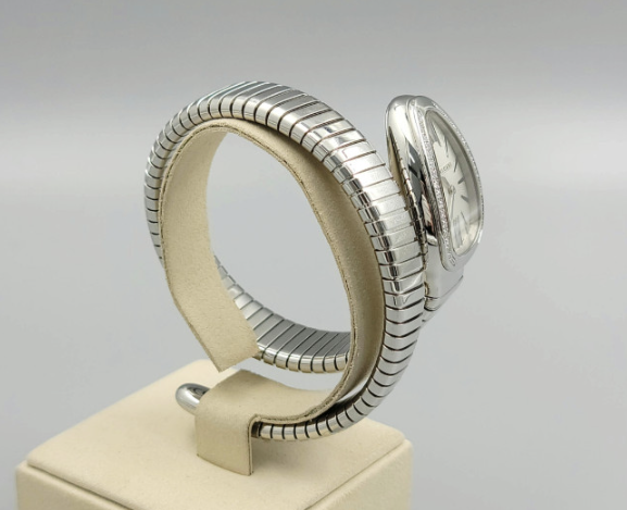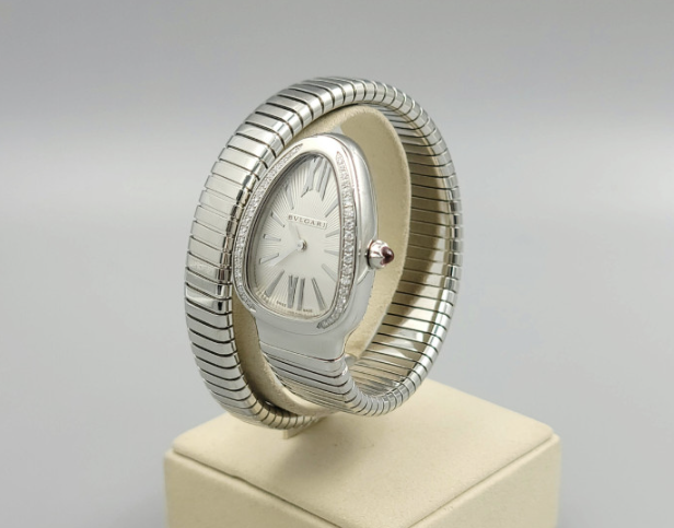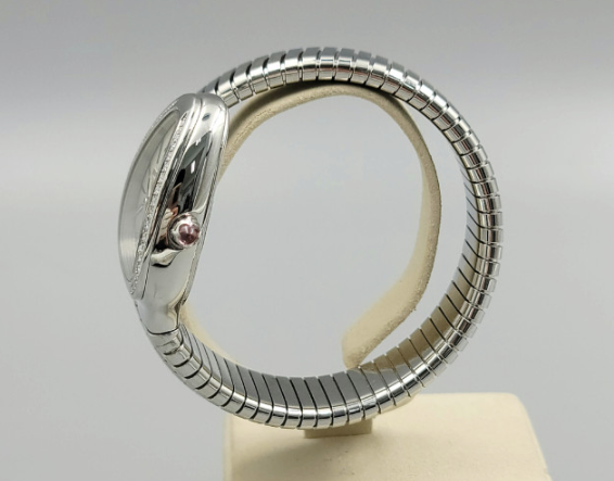 Bvlgari Bulgari Serpenti Snake Tubogas Small Silver Opaline Diamonds Steel Small Bangle Quartz,불가리 세르펜티 투보가스 실버 오팔린 스몰 다이아몬드 다이아 뱀 뱅글 스틸 스몰 쿼츠 실버 오팔린 다이아몬드 다이아,101816,사파이어 크리스탈,35mm,쿼츠,Stainless steel + rubellite,Applied roman & trapezoidal indices,실버 오팔린,Serpenti Tubogas,세르펜티 투보가스,Bvlgari,불가리