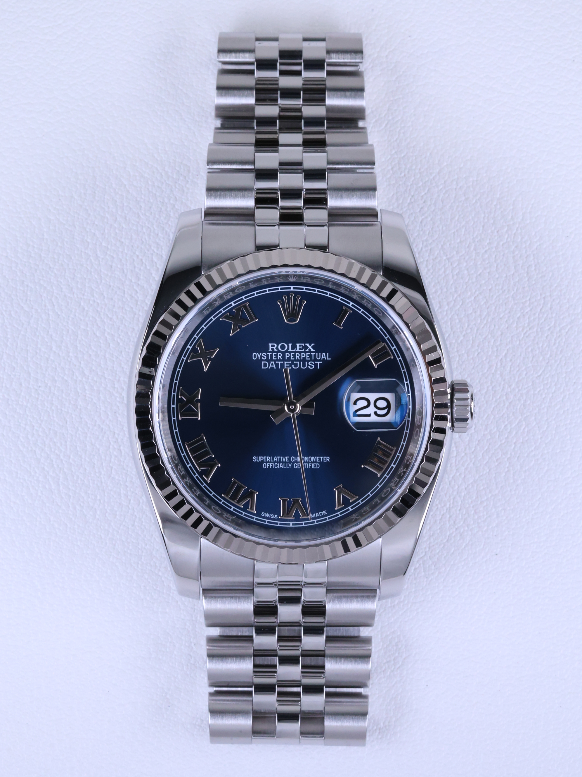 datejust36,116234,m116234-0141,블루,로만,스테인레스 스틸 + 화이트 골드,스테인레스 스틸,쥬빌리 브레이슬릿,사파이어 크리스탈,36mm,데이트저스트,데이저스트,데이트,화이트골드,화골,롤레조,콤비,예물시계 추천,쥬빌리,어버이날 선물,40대 추천,단종,Rolex,스테인리스 스틸,Switzerland,Stainless steel,Hidden folding clasp,Date / roman numeral indices,Hour + minute + seconds,Datejust 36,데이저스트 36,Datejust,롤렉스,웨딩
