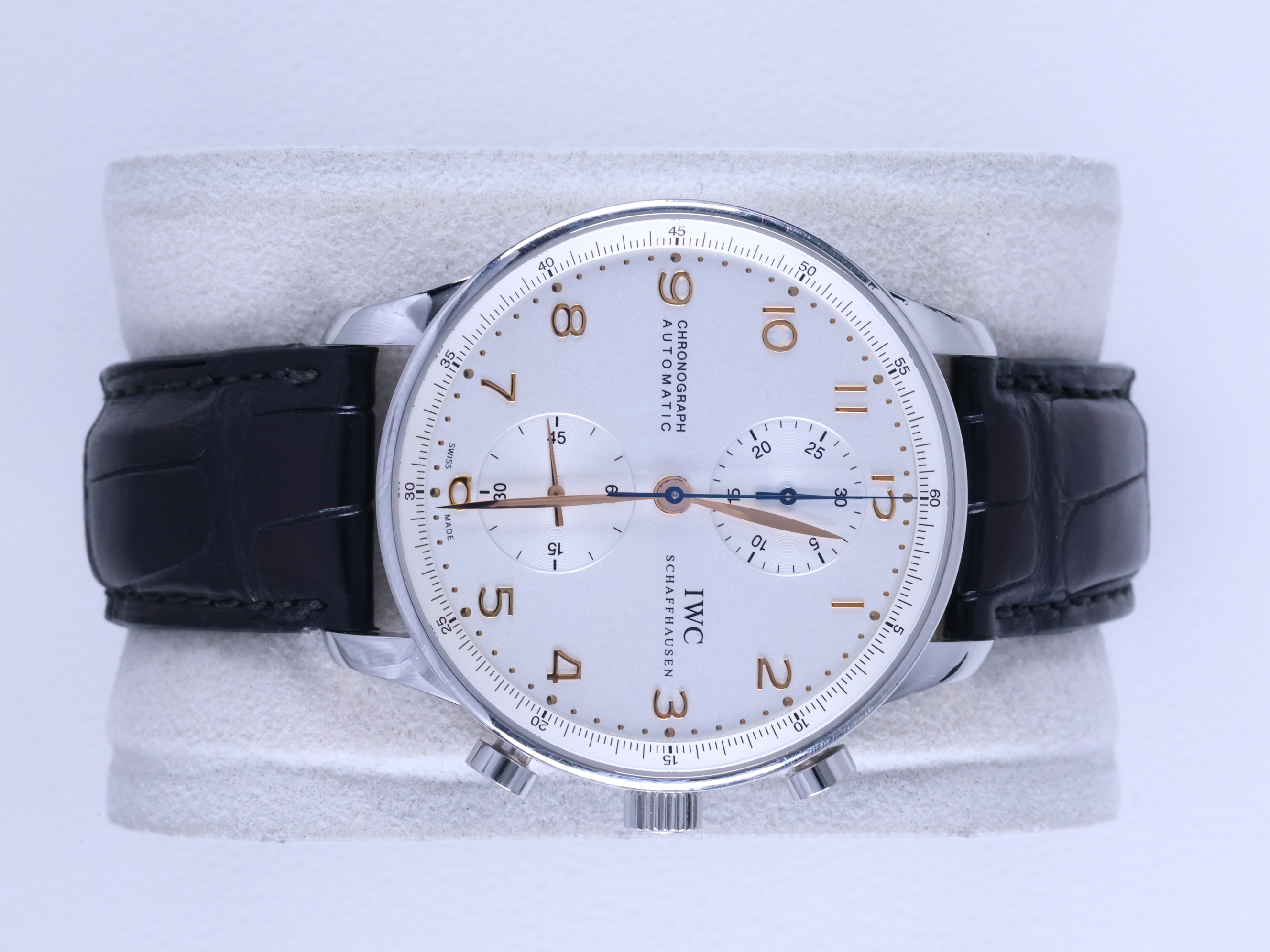 IW371401,IWC 포르투기즈 포르투기져 포르투기저 크로노그래프 IW3714 IW3714-01 IW371401 스틸 실버 길트 41미리 41mm 스틸,IWC Portuguese Portugieser Chronograph IW3714 IW3714-01 IW371401 40.9mm 41mm steel silver dial IW3714 IW3714-01 IW371401 arabic,아라빅,아랍,Portuguese Chronograph,포르투기즈 크로노그래프,Portugieser,IWC,스테인리스 스틸,셀프 와인딩,Stainless steel,Deployant folding clasp with anchor buckle,Chronograph subdial,small seconds / applied hour markers,Chronograph subdial, small seconds / applied hour markers