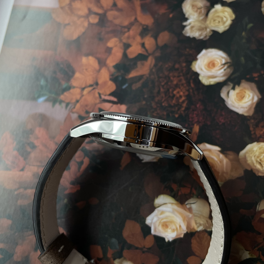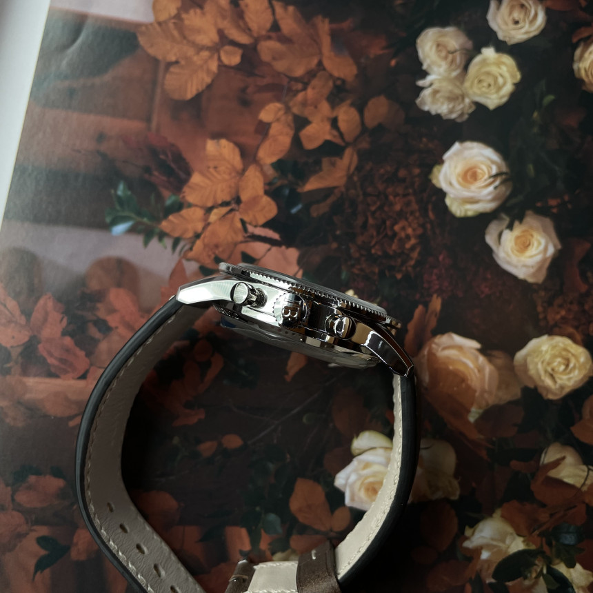 소재 : 스틸스트랩 : 브라운 송아지 가죽 / 핀버클무브먼트 : 칼리버 F388B 오토매틱