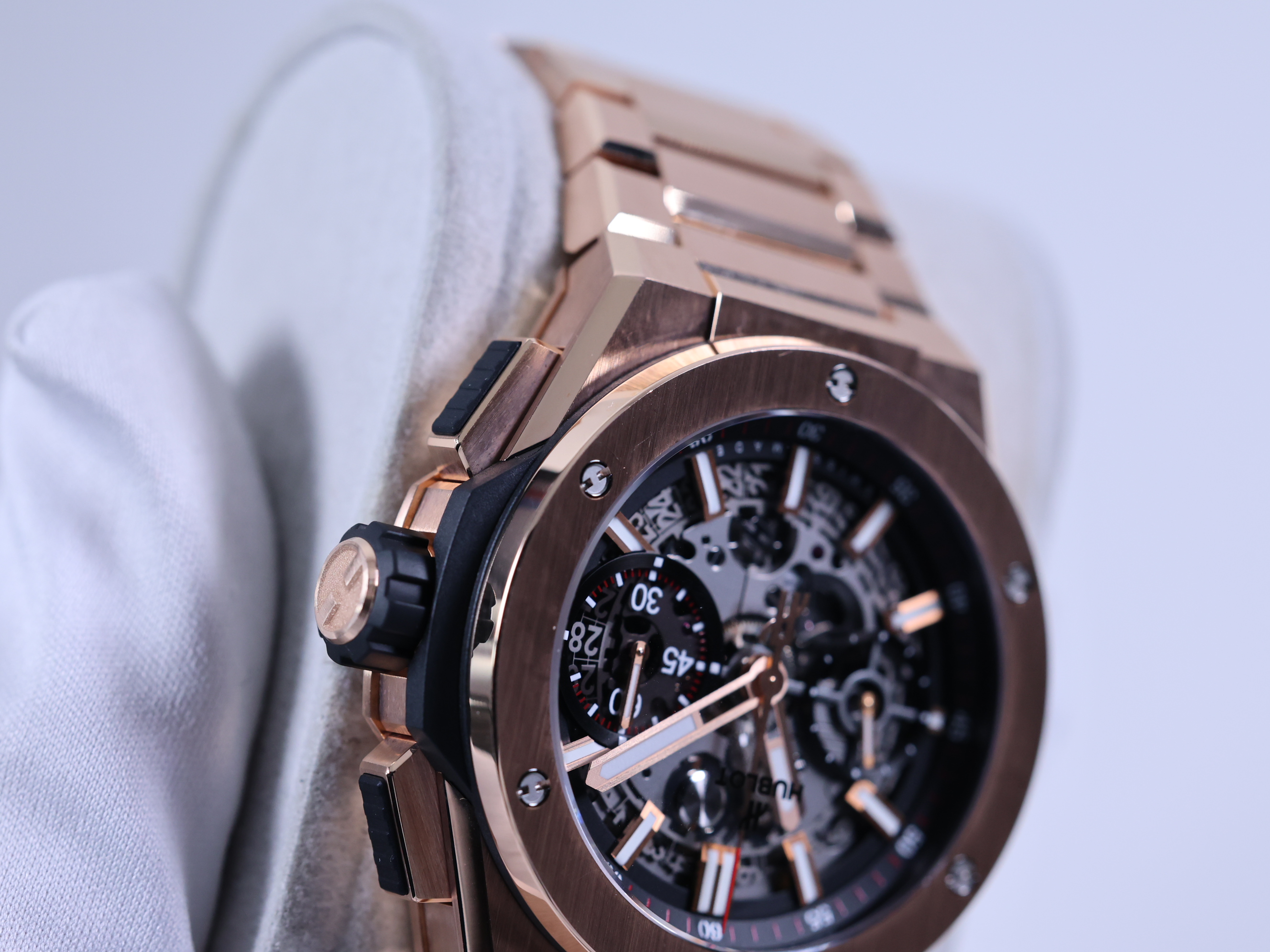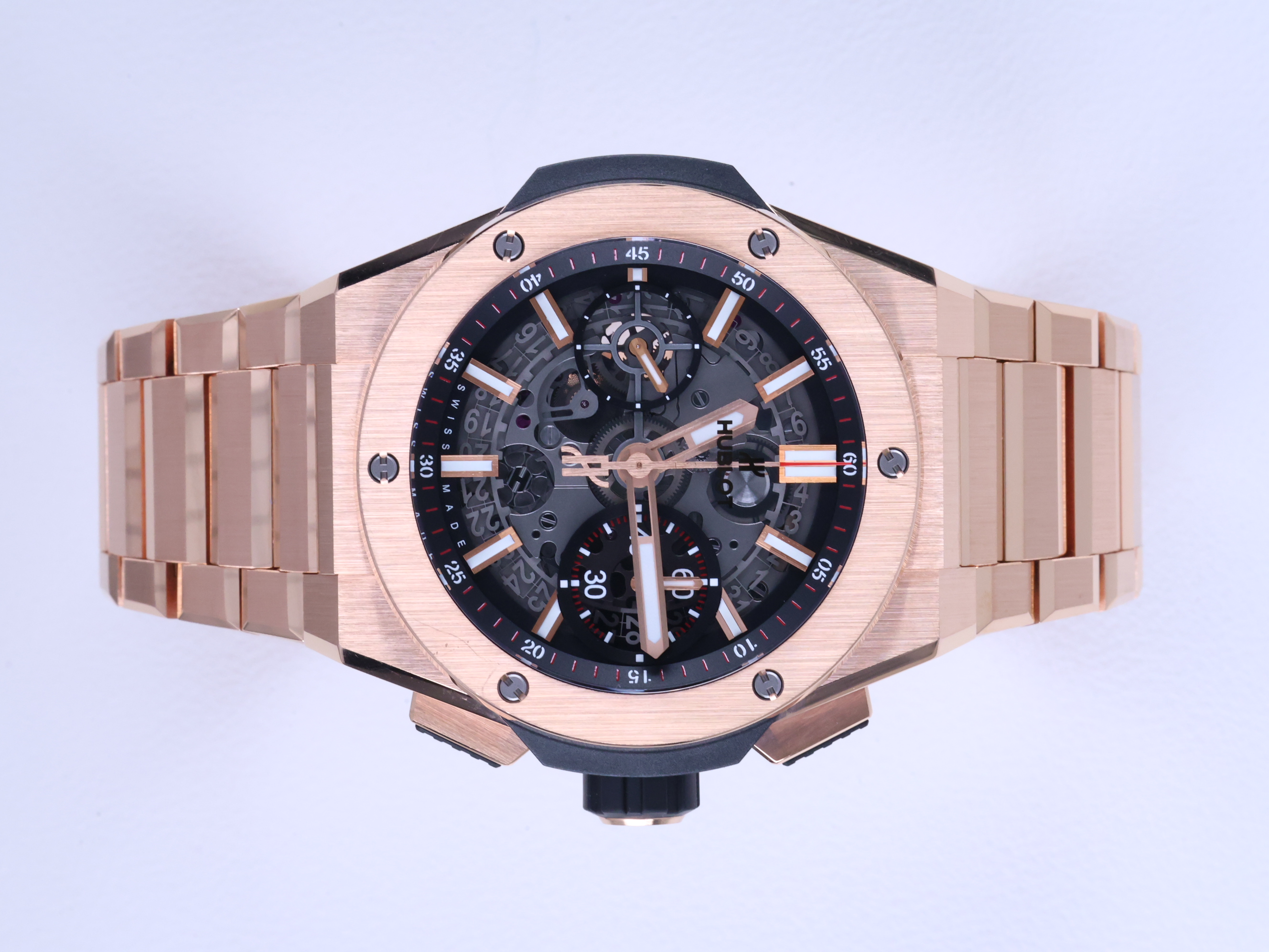 451.OX.1180.OX,Big Bang Integrated King Gold,빅뱅 인테그랄 킹 골드,Big Bang,Hublot,위블로,위블로 빅뱅 빅 뱅 인테그랄 인테그레이티드 42mm 빅뱅 빅 뱅 유니코 킹골드 로즈골드 킹 로즈 골드 42mm 크로노 크로노그래프,Hublot Big Bang Integral Integrated 42mm King gold rose gold Unico 42mm chrono chronograph,빅뱅 인테그레이티드 킹 골드,스켈레톤,킹 골드,42mm,셀프 와인딩,Rubber clad King gold,Butterfly folding clasp,Date,chronograph subdial,small seconds / applied hour markers,Rubber clad King Gold,Date, chronograph subdial, small seconds / applied hour markers