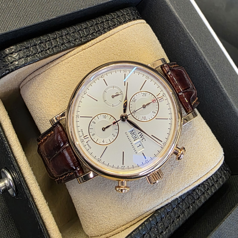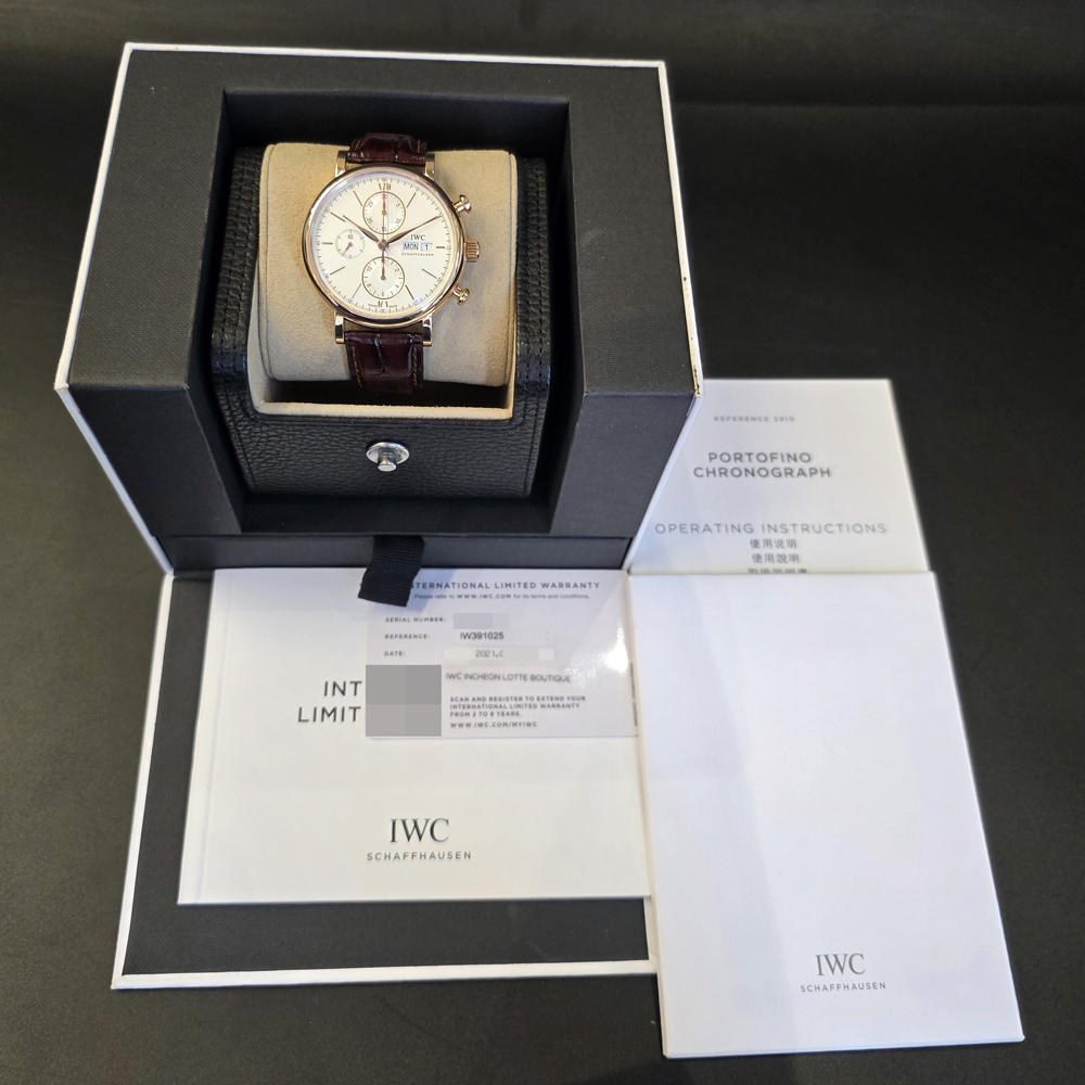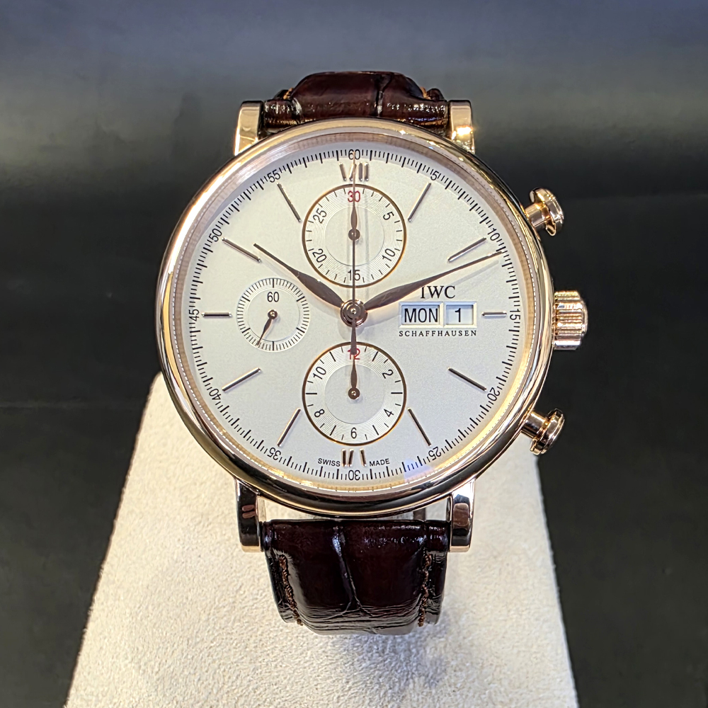 IWC 포르토피노 크로노그래프 42mm 실버 로즈골드 금통 가죽 스트랩 IW391025