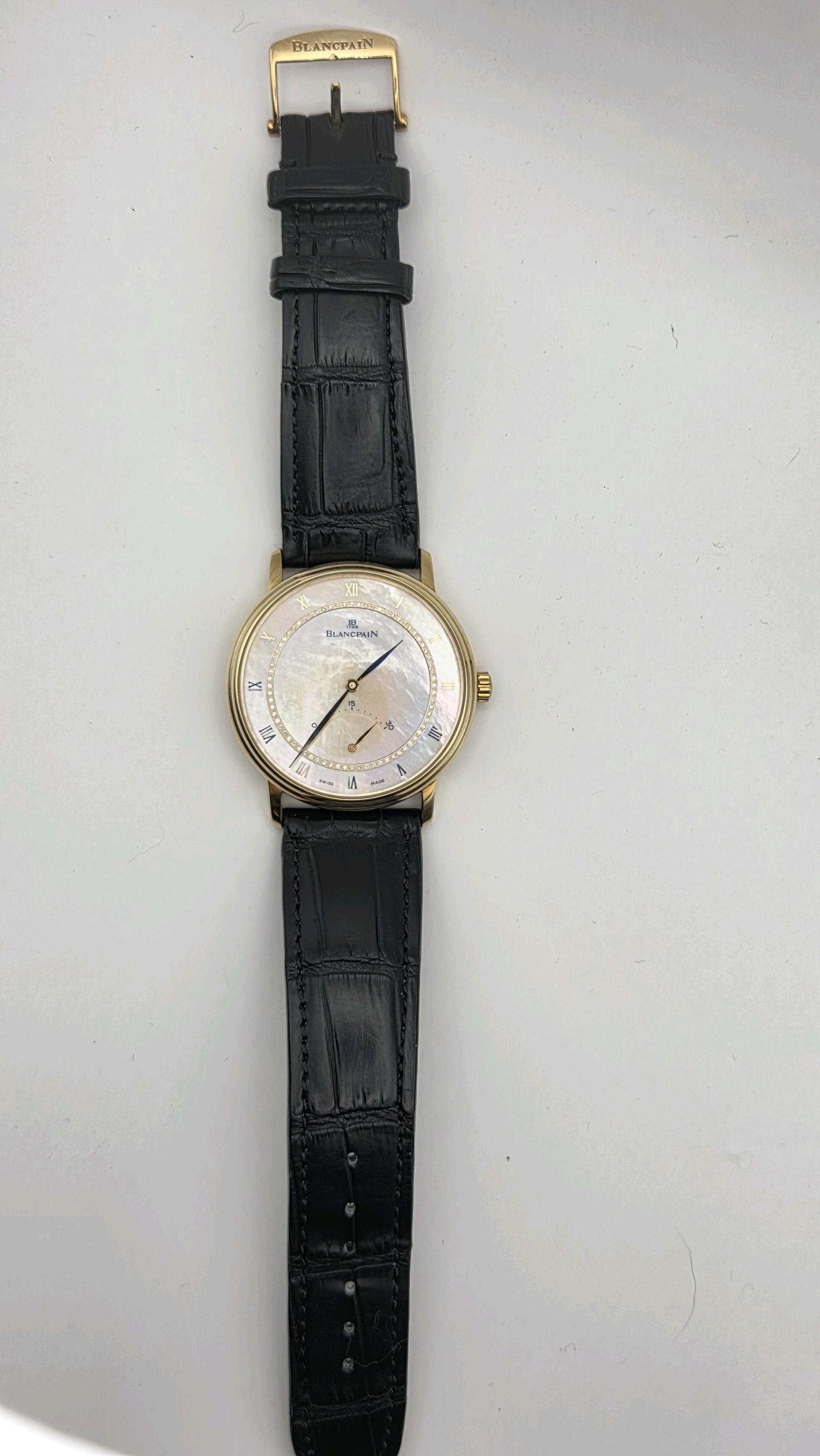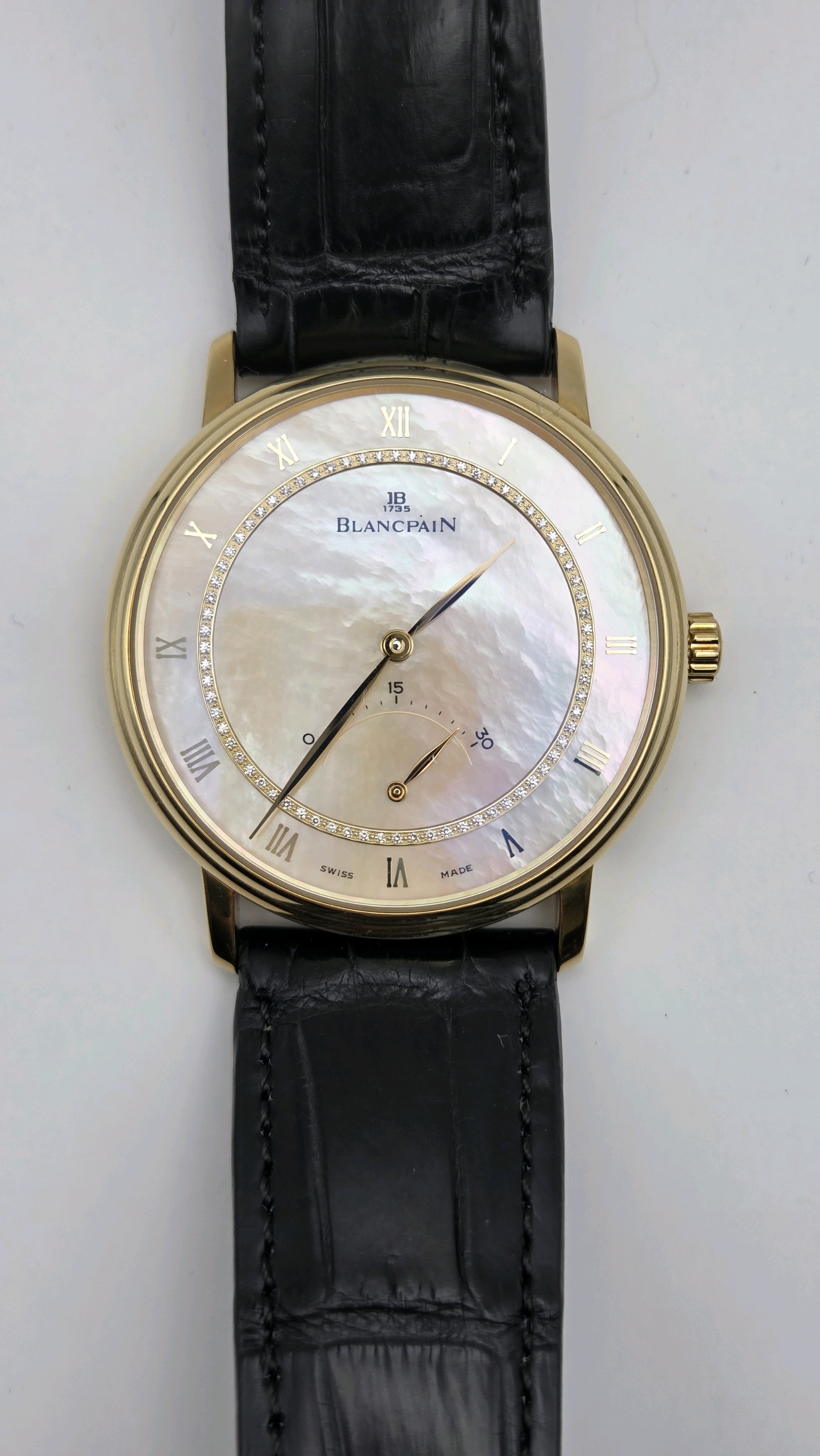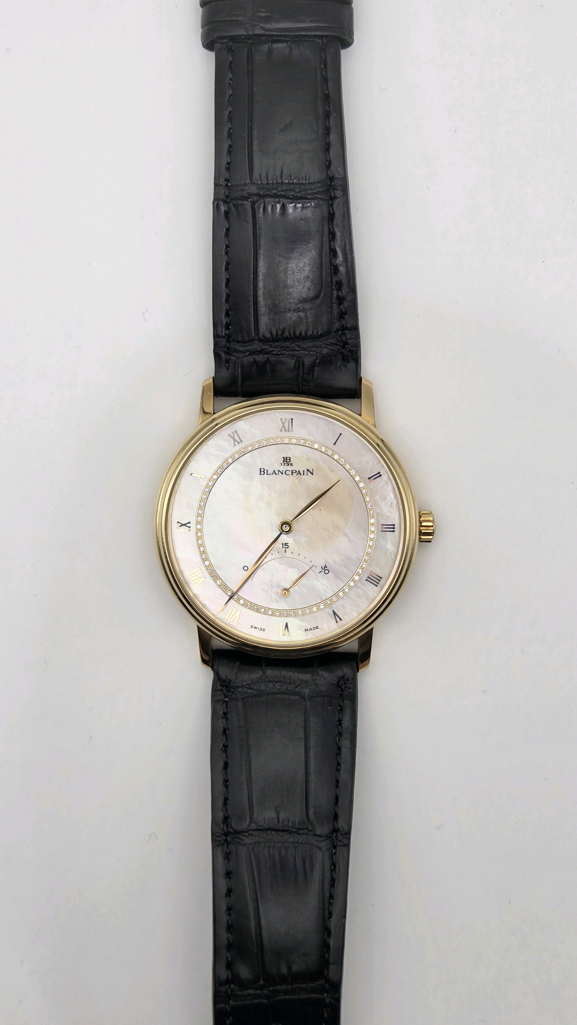 4063-1460-55,블랑팡 빌레 울트라 슬림 스몰 레트로그레이드 세컨즈 40 옐로우 골드,베이지,로만,자개,다이아몬드 세팅,옐로우 골드,셀프 와인딩,Yellow gold,Pin buckle,retrograde seconds / roman numeral indices,Villeret Ultra-Slim Small Retrograde Seconds,빌레 울트라 슬림 스몰 레트로그레이드 세컨즈,Villeret,Blancpain,블랑팡