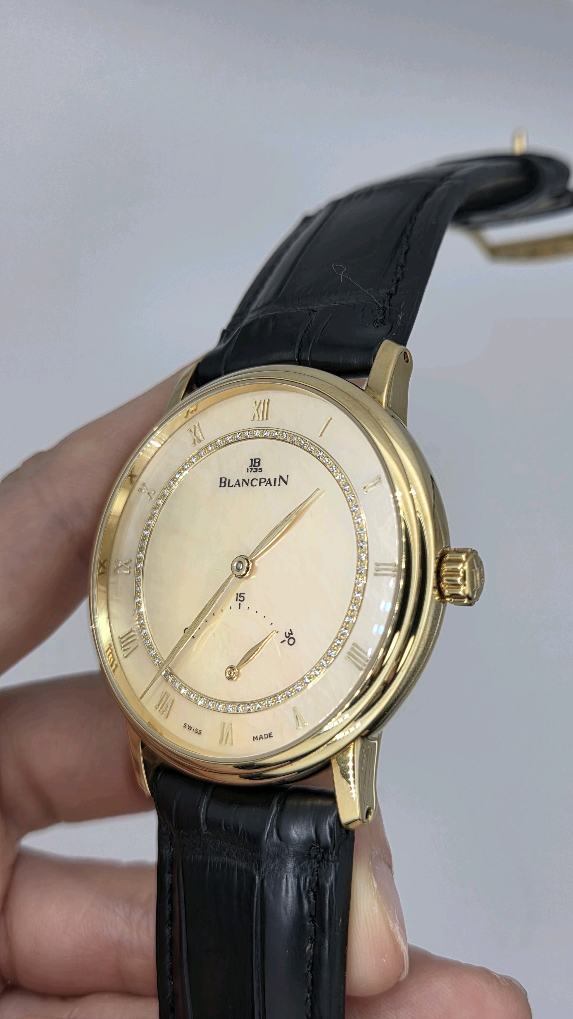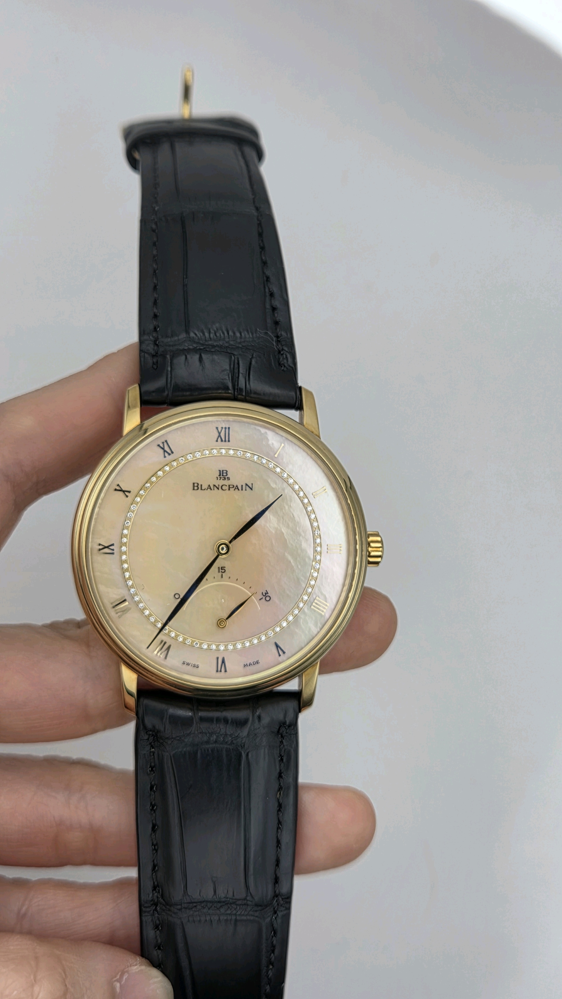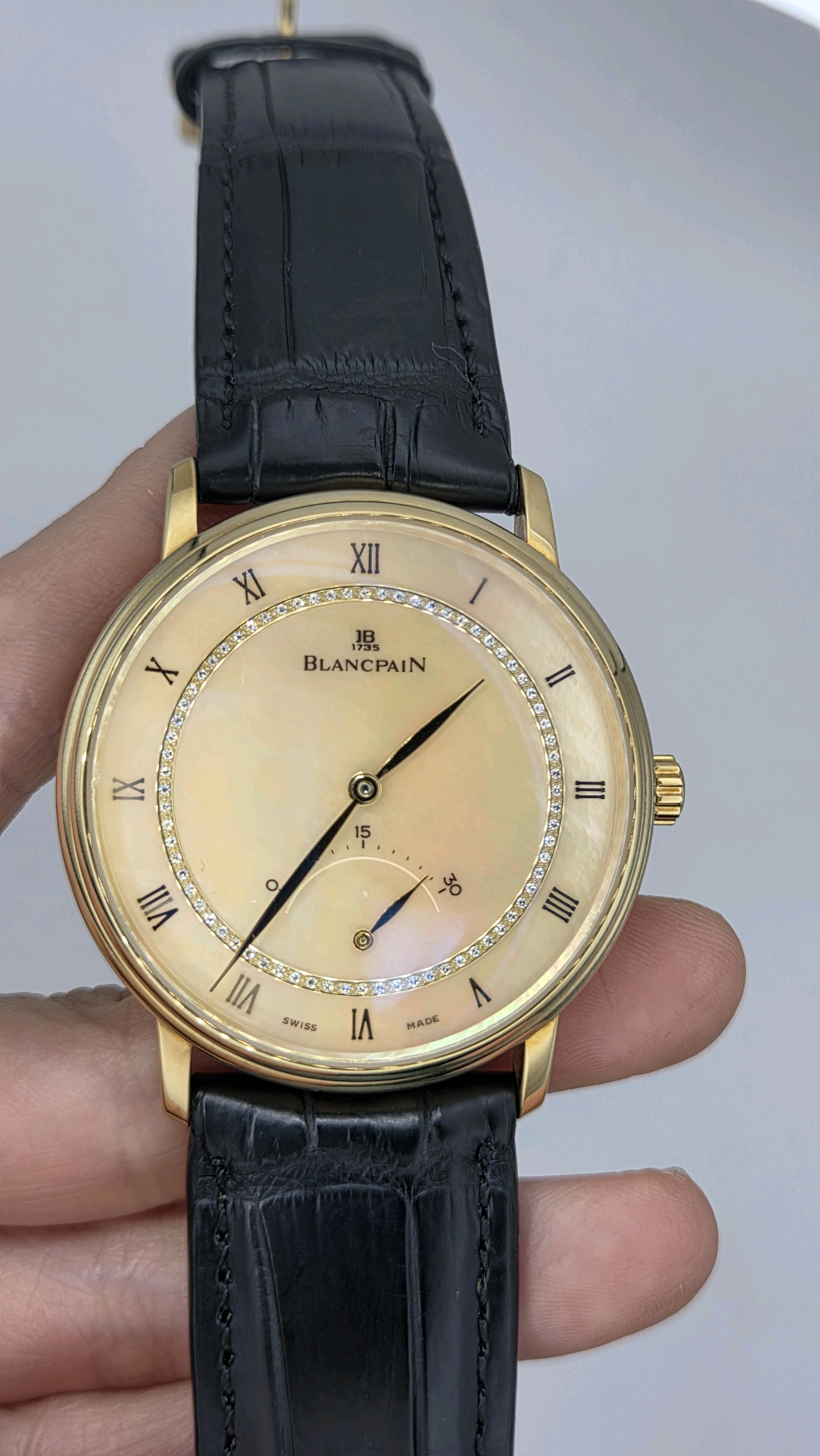 4063-1460-55,블랑팡 빌레 울트라 슬림 스몰 레트로그레이드 세컨즈 40 옐로우 골드,베이지,로만,자개,다이아몬드 세팅,옐로우 골드,셀프 와인딩,Yellow gold,Pin buckle,retrograde seconds / roman numeral indices,Villeret Ultra-Slim Small Retrograde Seconds,빌레 울트라 슬림 스몰 레트로그레이드 세컨즈,Villeret,Blancpain,블랑팡