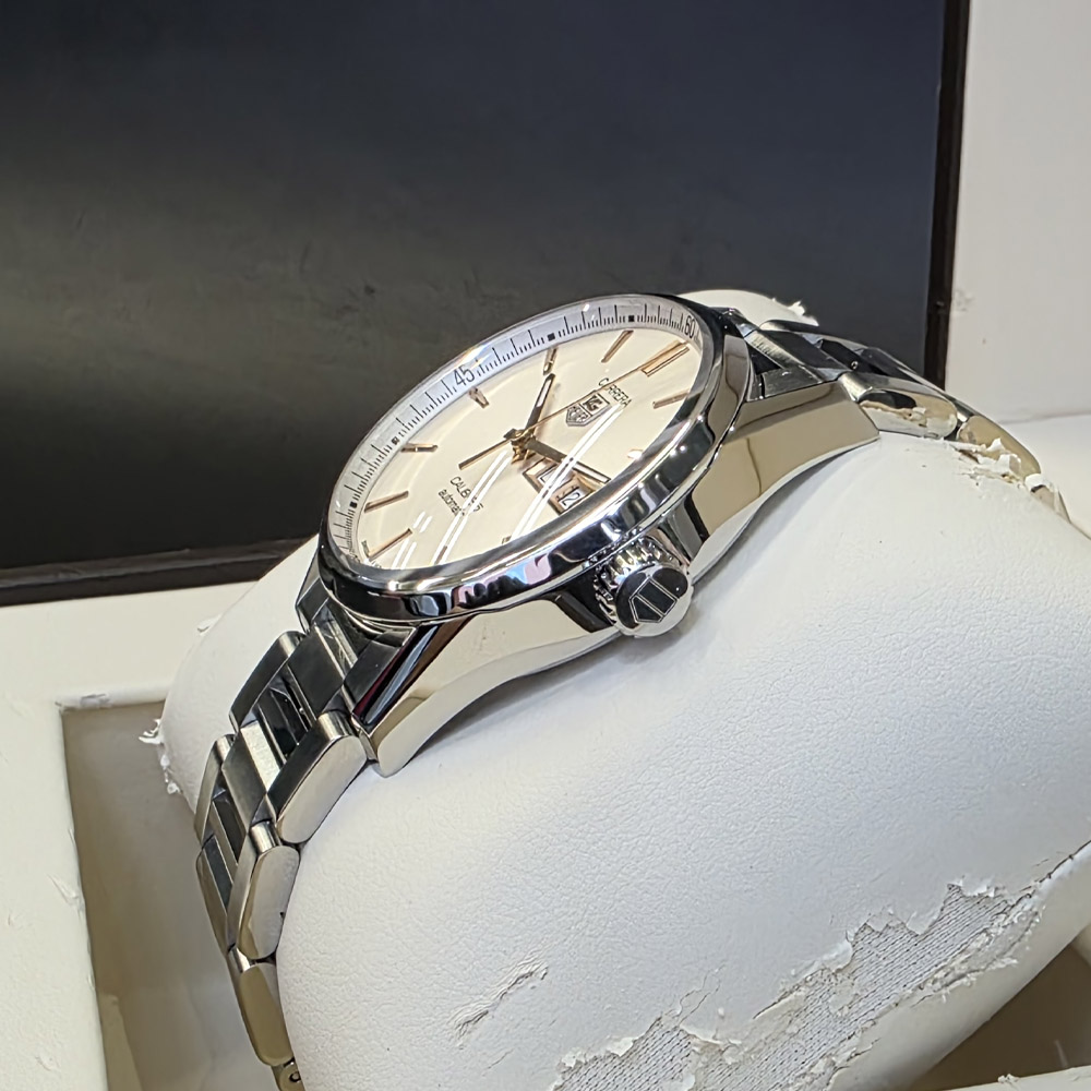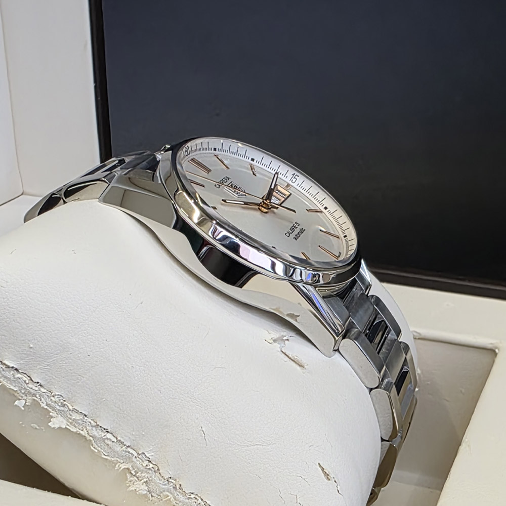 태그호이어 까레라 데이 데이트 41mm 흰판 스틸 로즈골드 바 인덱스 WAR201D