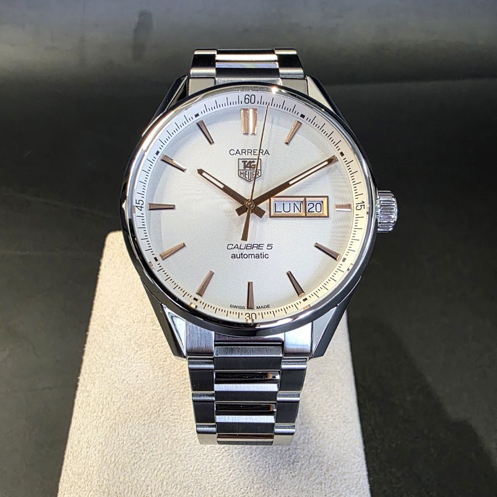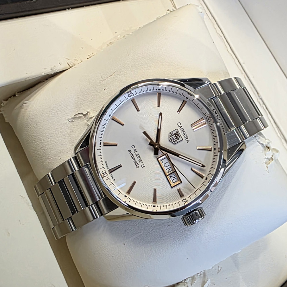 TAG Heuer Carrera Calibre 5 Day Date 41,TAG Heuer Carrera Day Date White,태그호이어 까레라 칼리버 5 데이데이트 41,태그호이어 까레라 데이데이트 스틸,태그호이어 까레라 데이데이트 41 오토매틱,태그호이어 까레라 스틸 데이데이트 브레이슬릿,태그호이어 까레라 스틸 데이데이트,태그호이어 까레라 데이데이트 화이트 실버,WAR201D.BA0723,화이트,사파이어 크리스탈,41mm,셀프 와인딩,Stainless steel,Push-button folding clasp,Day-date / applied rose gold plated baton indices,Hour + minute + seconds,Carrera Calibre 5 Day Date 41,까레라 칼리버 5 데이데이트 41,Carrera,TAG Heuer,태그 호이어