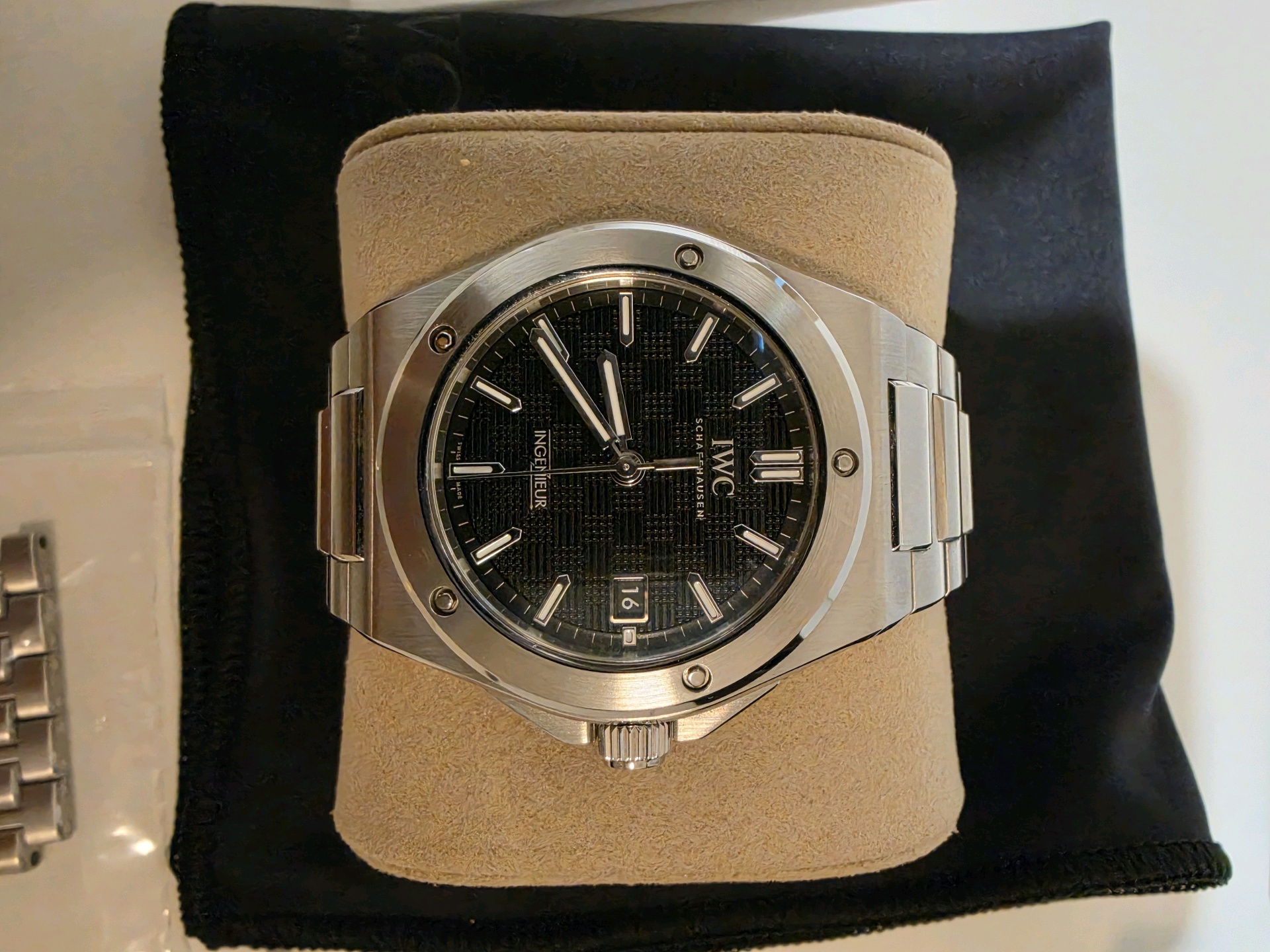 IWC Ingenieur IW328901,IWC IW328901,IWC 인제니어 IW328901,인제니어,IWC,아이더블유씨,아이 더블유 씨,IWC Ingenieur,IWC 인제니어,IWC 엔지니어,IWC 인지니어,젠타 디자인,젠타디자인,제랄드 젠타 디자인,일체형 브레이슬릿,일체형 시계,Integrated Bracelet,IWC 인제니어 블랙 다이얼,IWC 인제니어 검판,IWC 검판,IWC 블랙 다이얼,IWC 검정색 다이얼,IWC 인제니어 검정색 다이얼,블랙,체커보드 패턴 스탬핑,40mm,스테인리스 스틸,셀프와인딩,Ingenieur Automatic 40,인제니어 오토매틱 40,Ingenieur,100m,Switzerland,Stainless steel,Butterfly clasp,Date / applied obelisk indices,Hour + minute + seconds,셀프 와인딩,.블랙,바,패턴,폴딩 클라스프,데이트,14mm,원형,스포츠,남성용