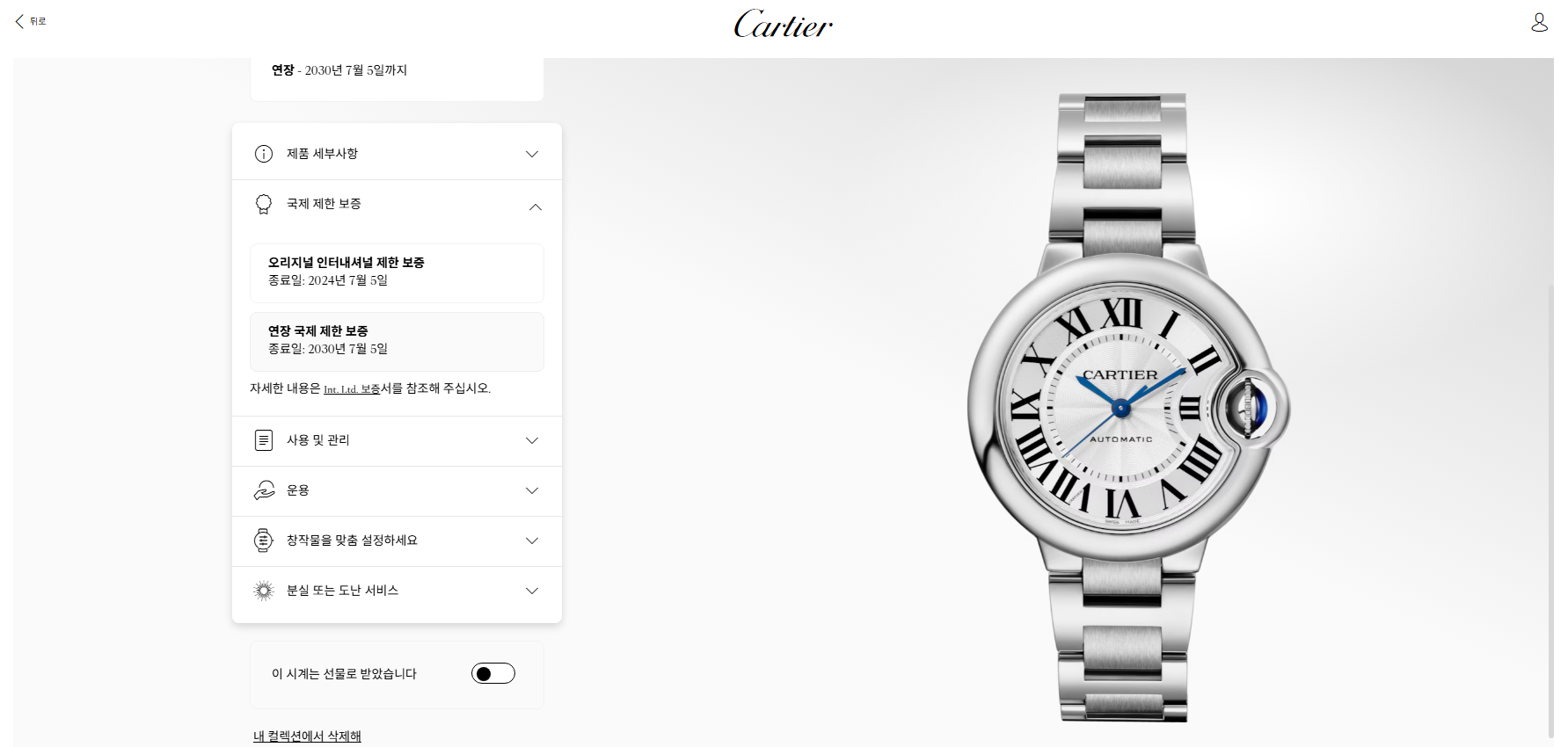 보증 만료전까지 까르띠에 정식 센터에서 오버홀 및 폴리싱 가능함