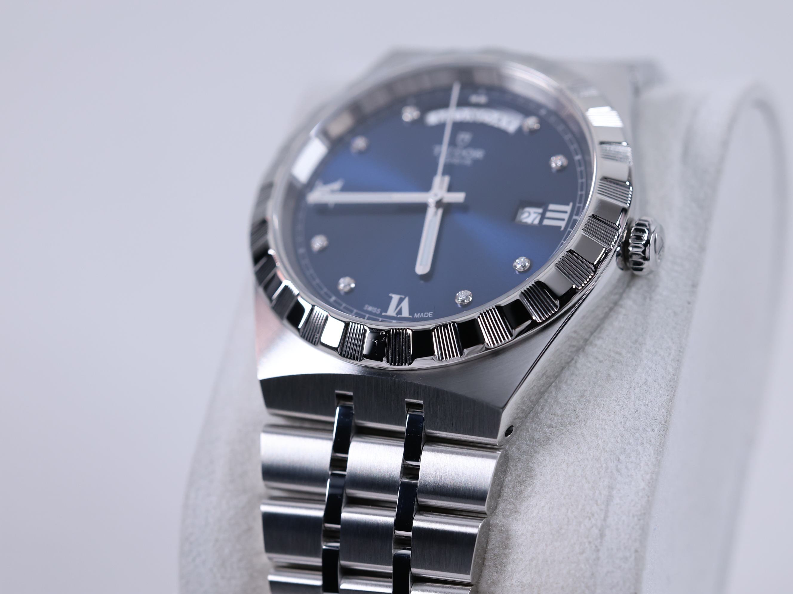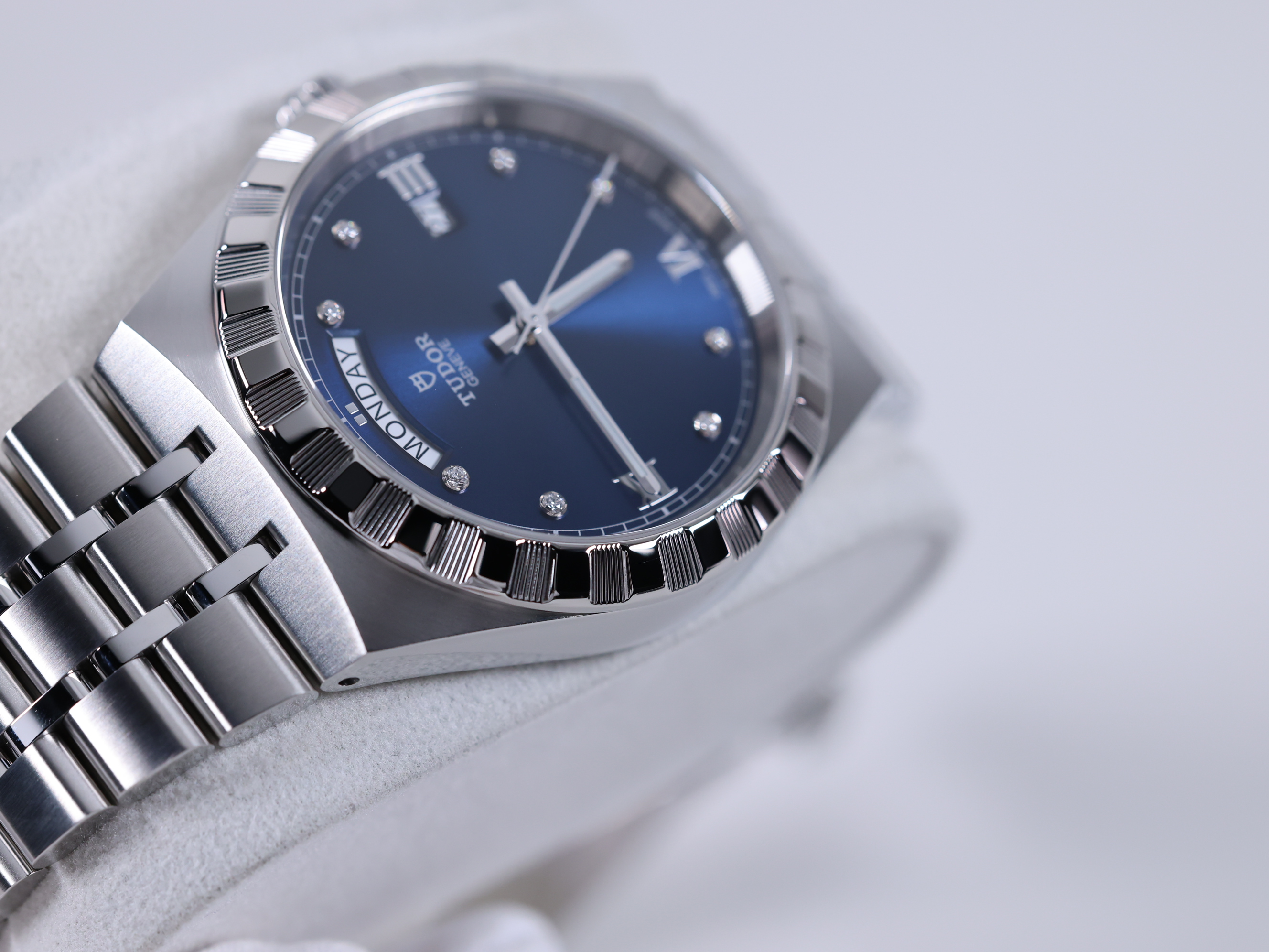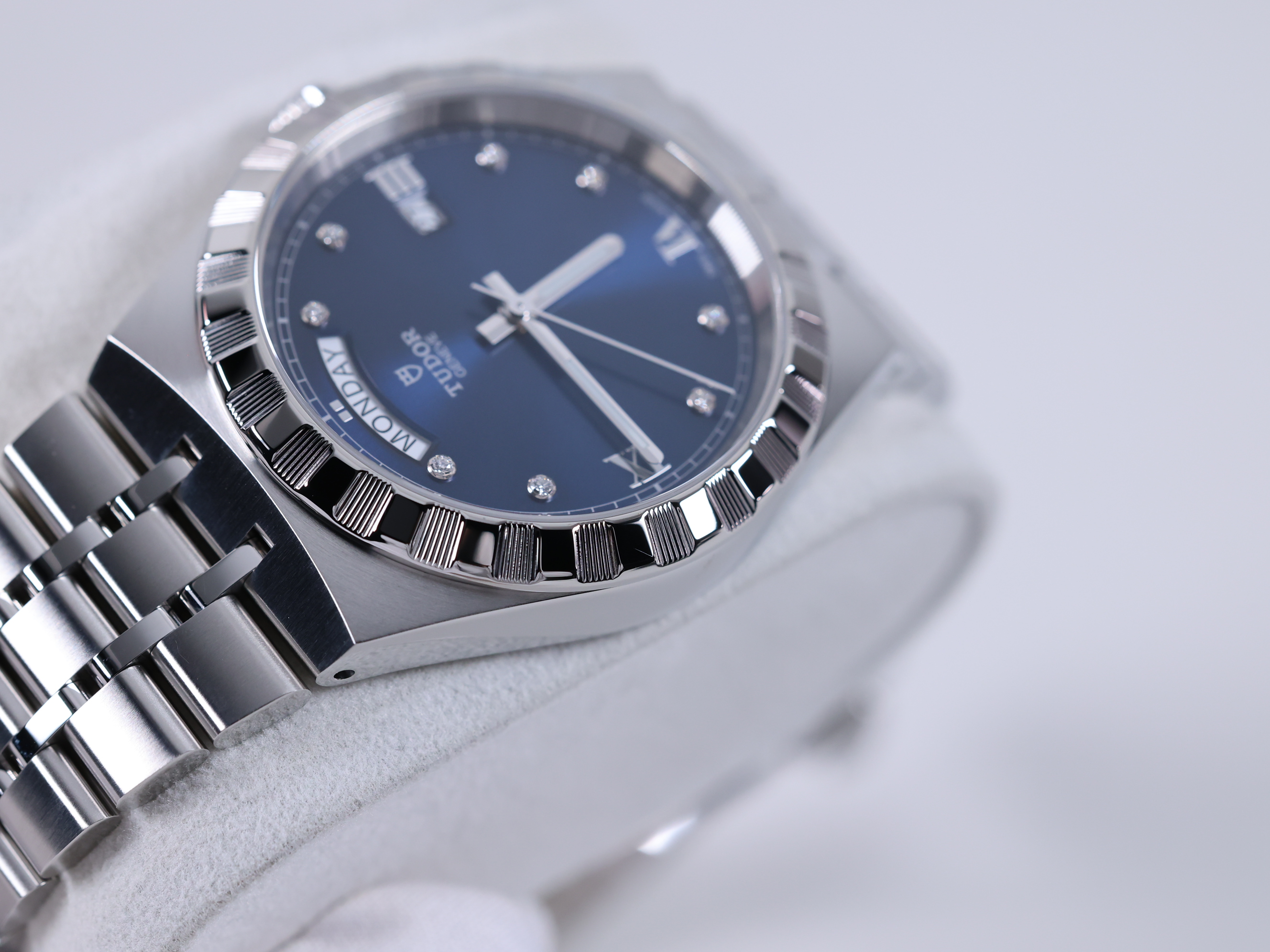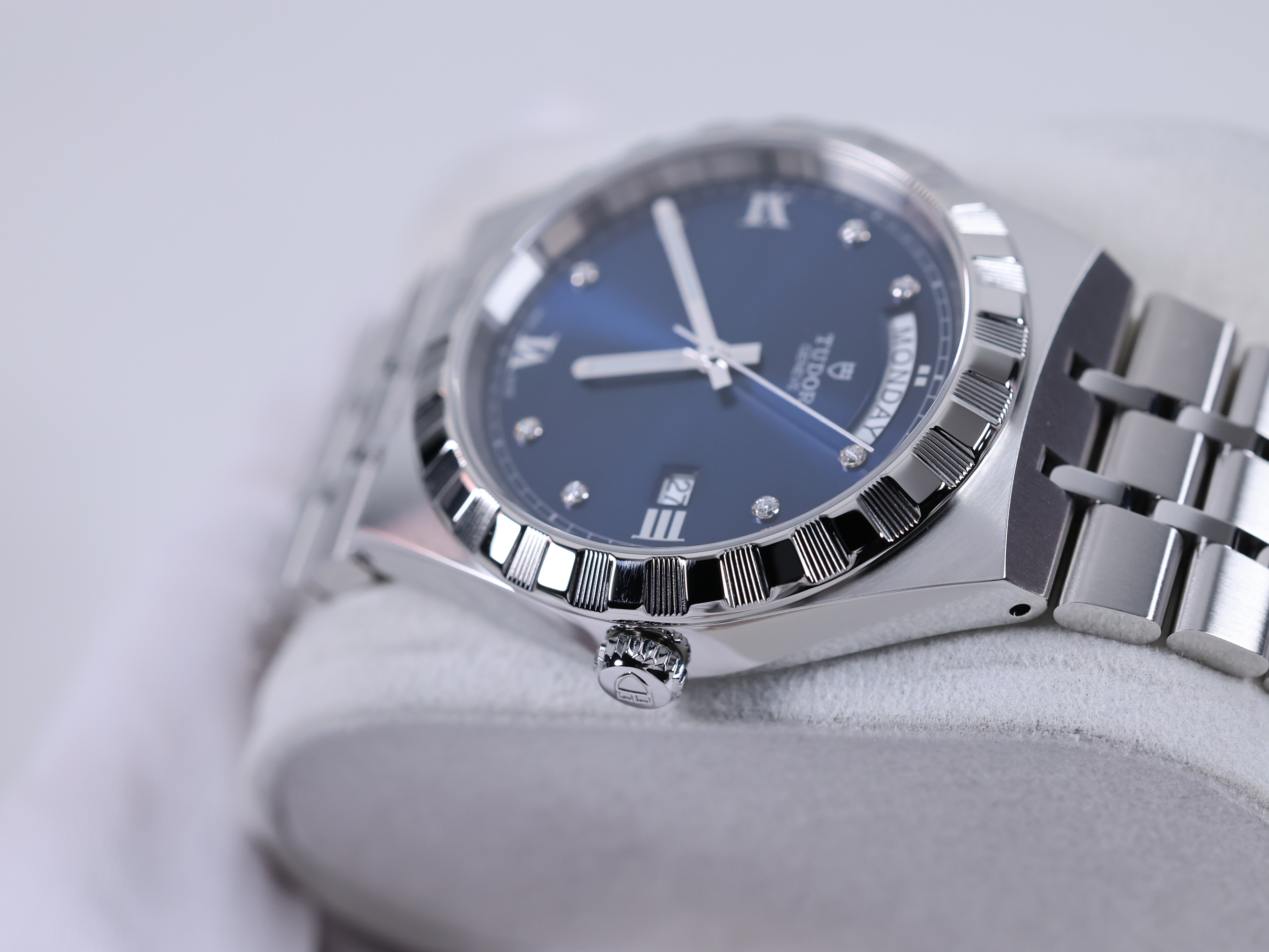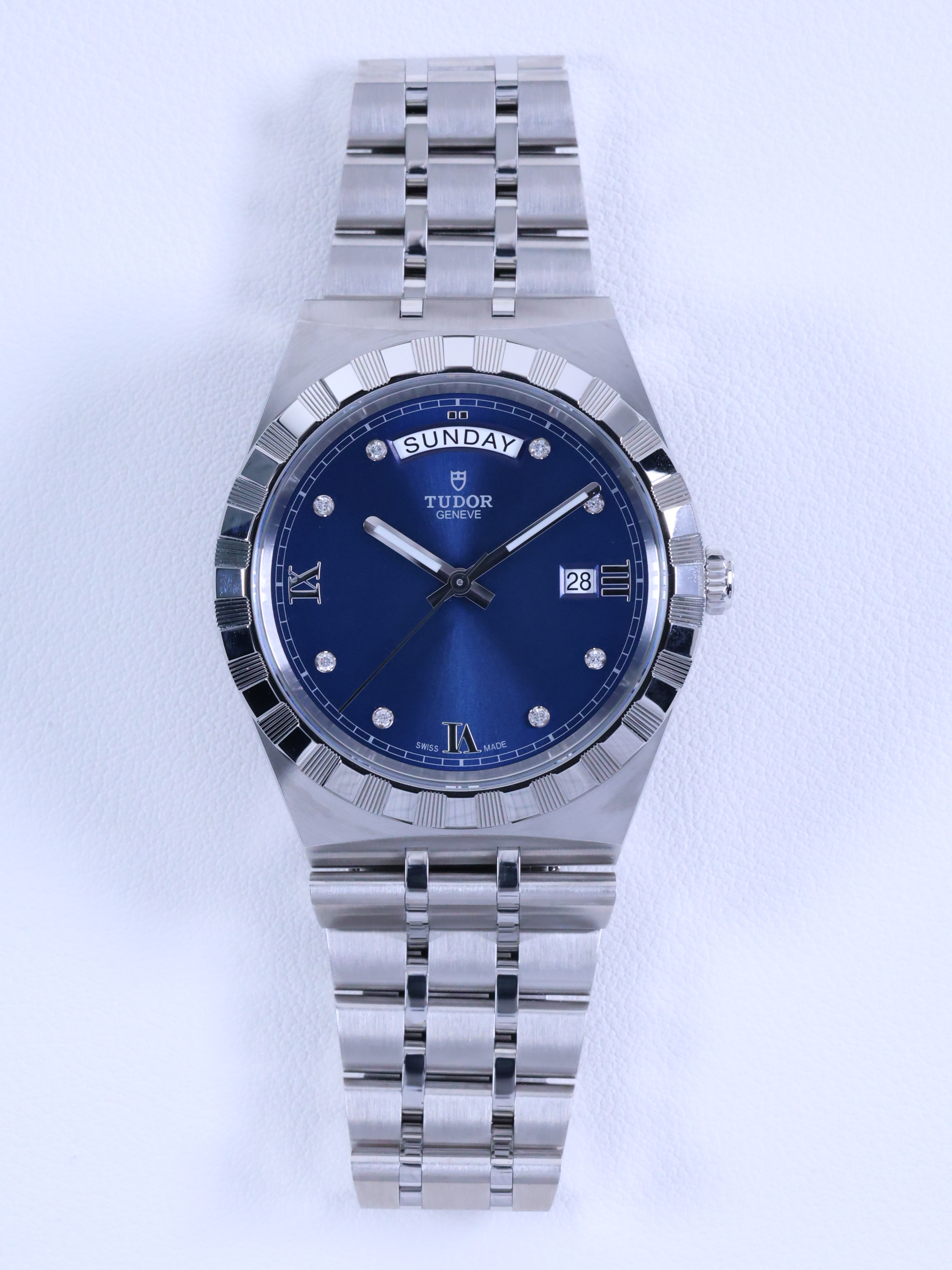 M28600-0006,Tudor Royal 28600 41mm Steel Blue Steel 41mm Diamonds,튜도 로얄 블루 41mm 스틸 블루 스틸 41mm 다이아몬드 다이아 블루 다이아 28600,블루,다이아몬드 세팅,사파이어 크리스탈,41mm,스테인리스 스틸,셀프 와인딩,Stainless steel,Folding clasp,Date,applied diamond-set & roman numeral indices,minute track,Tudor Royal,튜더 로얄,Royal,Tudor,튜더,튜더 로열,Day,date / applied diamond-set & roman numeral indices,TUDOR Royal,.블루,보석 세팅,폴딩 클라스프,데이-데이트,10mm,원형,클래식,남성용,로만, 다이아몬드 세팅,Day, date / applied diamond-set & roman numeral indices, minute track