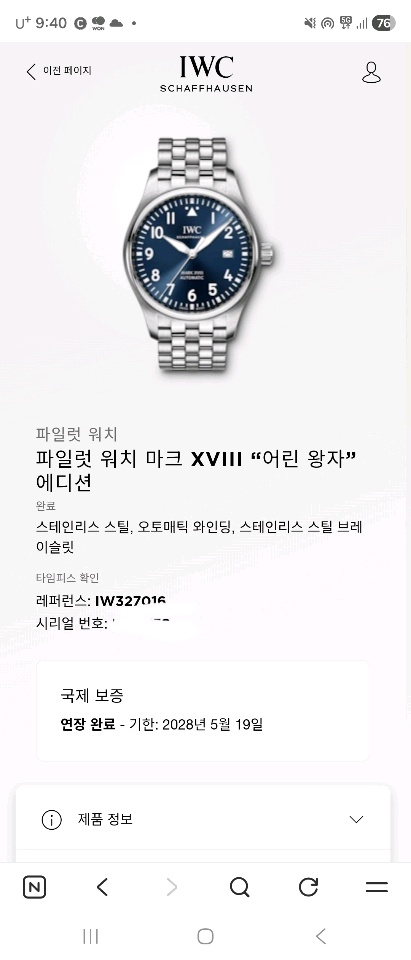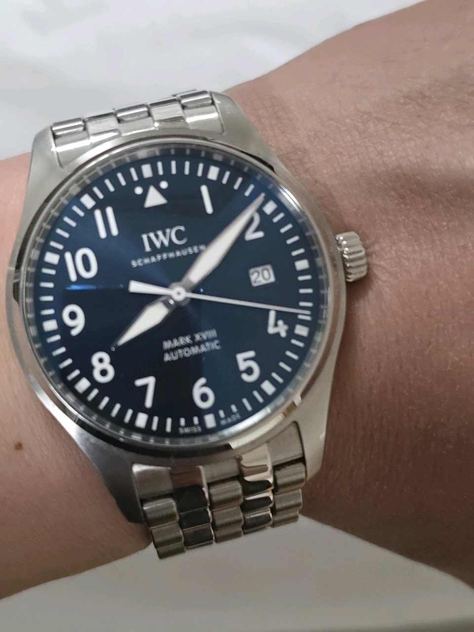 IW327016,IWC,블루,스테인리스 스틸,셀프와인딩,Mark XVIII "Le Petit Prince",마크 18 "어린 왕자" 에디션,Pilot's Watch,IWC 파일럿 워치 마크 18 어린 왕자,IWC 마크 XVIII 어린 왕자,IWC 마크 18 어린왕자,IWC 마크 18 어린 왕자,IWC 어린왕자,IWC 어린 왕자,IWC 마크 18 청판,Pilot's Watch Mark XVIII "Le Petit Prince",셀프 와인딩,Stainless steel,Folding clasp,Date / printed arabic numeral indices & minute track,Pilot's Watch Mark XVIII 'Le Petit Prince',마크 18 '어린 왕자' 에디션,Pilot's Watches