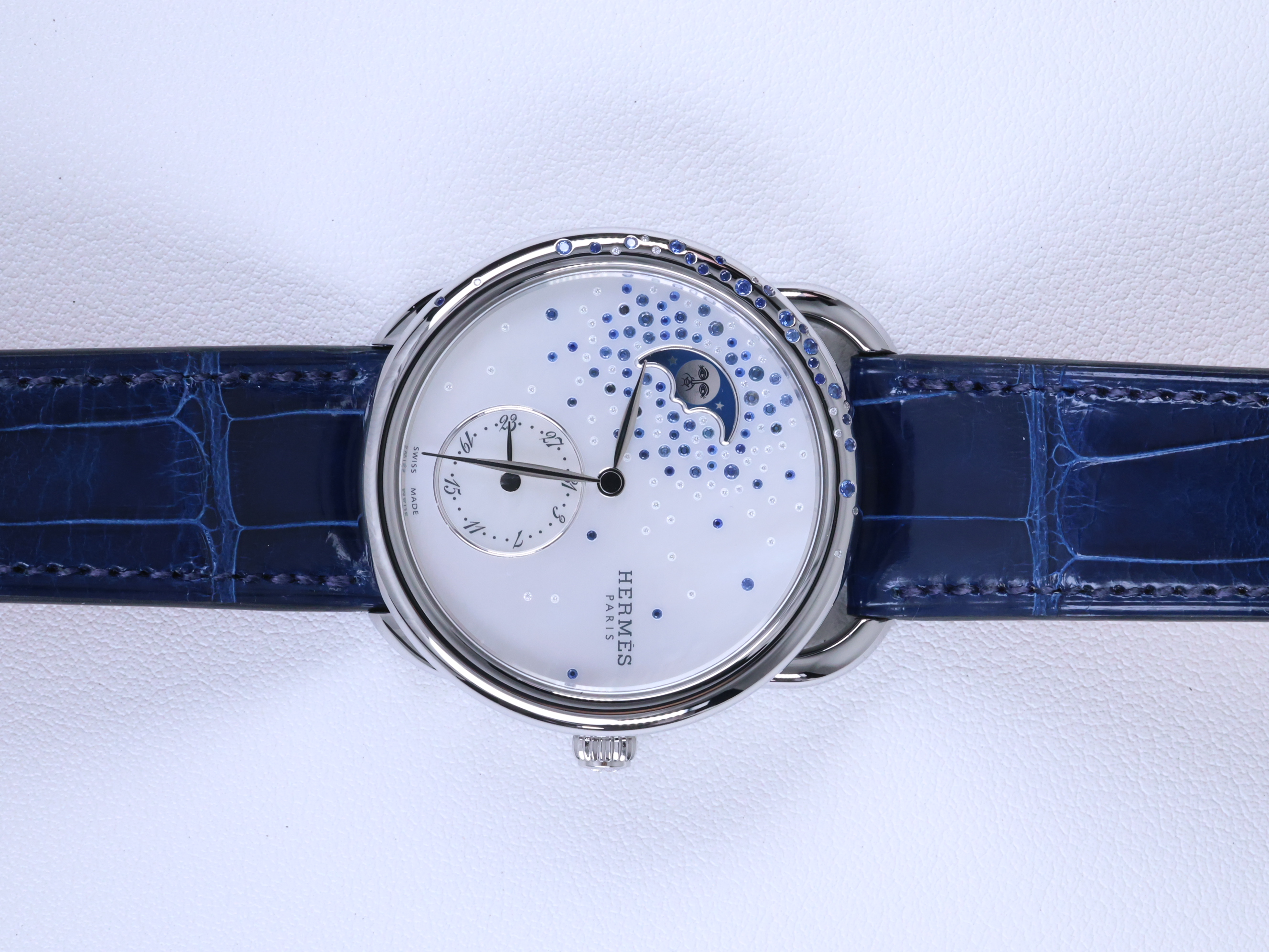 Hermes Arceau Petit Lune Grand Grande large model steel,에르메스 아쏘 쁘띠 문 룬 문페이즈 38mm 스틸 사파이어 다이아 다이아몬드 38mm,스테인리스 스틸,38mm,Arceau Petite Lune,아쏘 쁘띠 룬,Arceau,Hermes,에르메스,셀프 와인딩,Stainless steel,Pin buckle,Date aperture,moonphase / no indices,Date aperture, moonphase / no indices