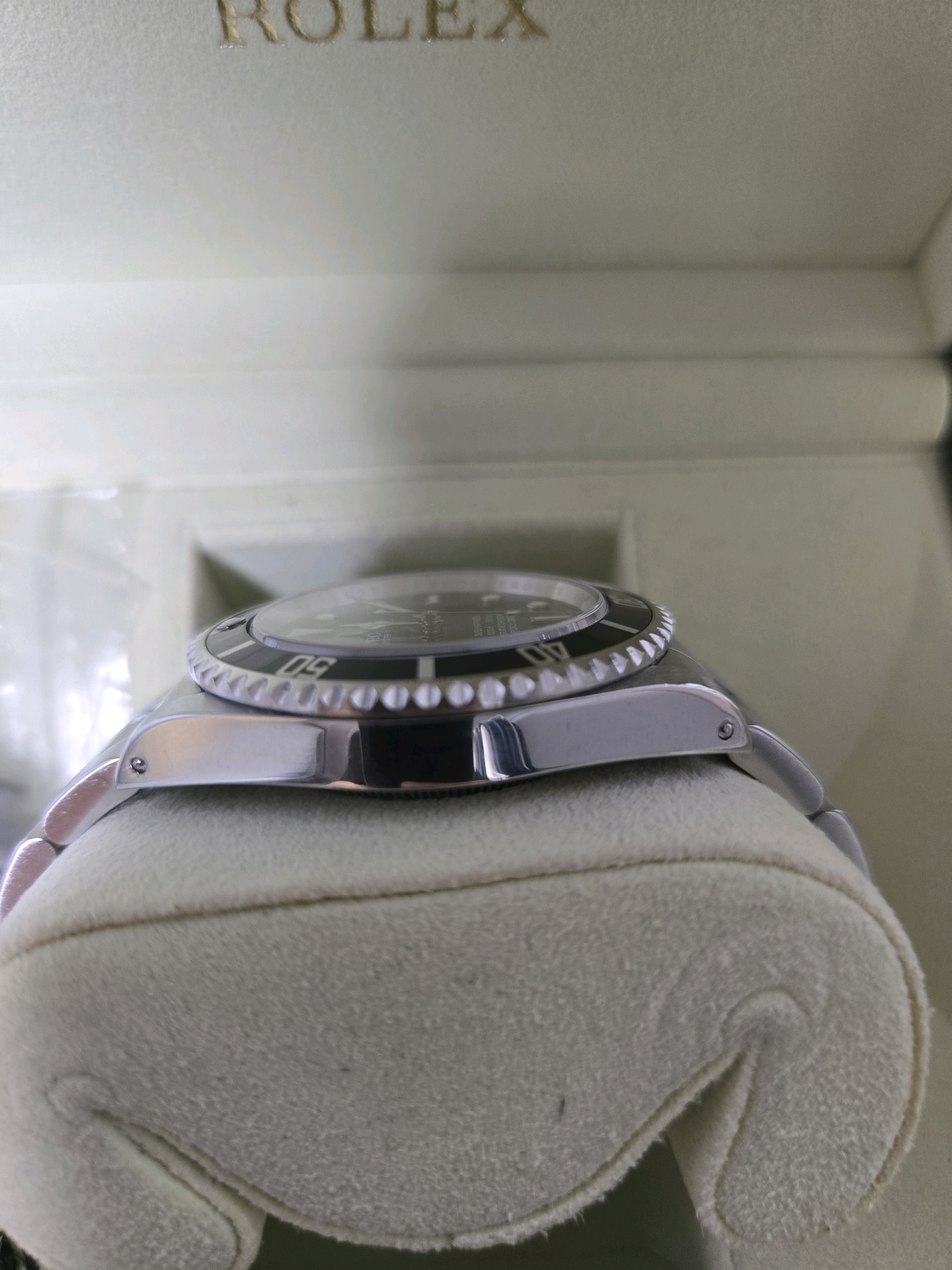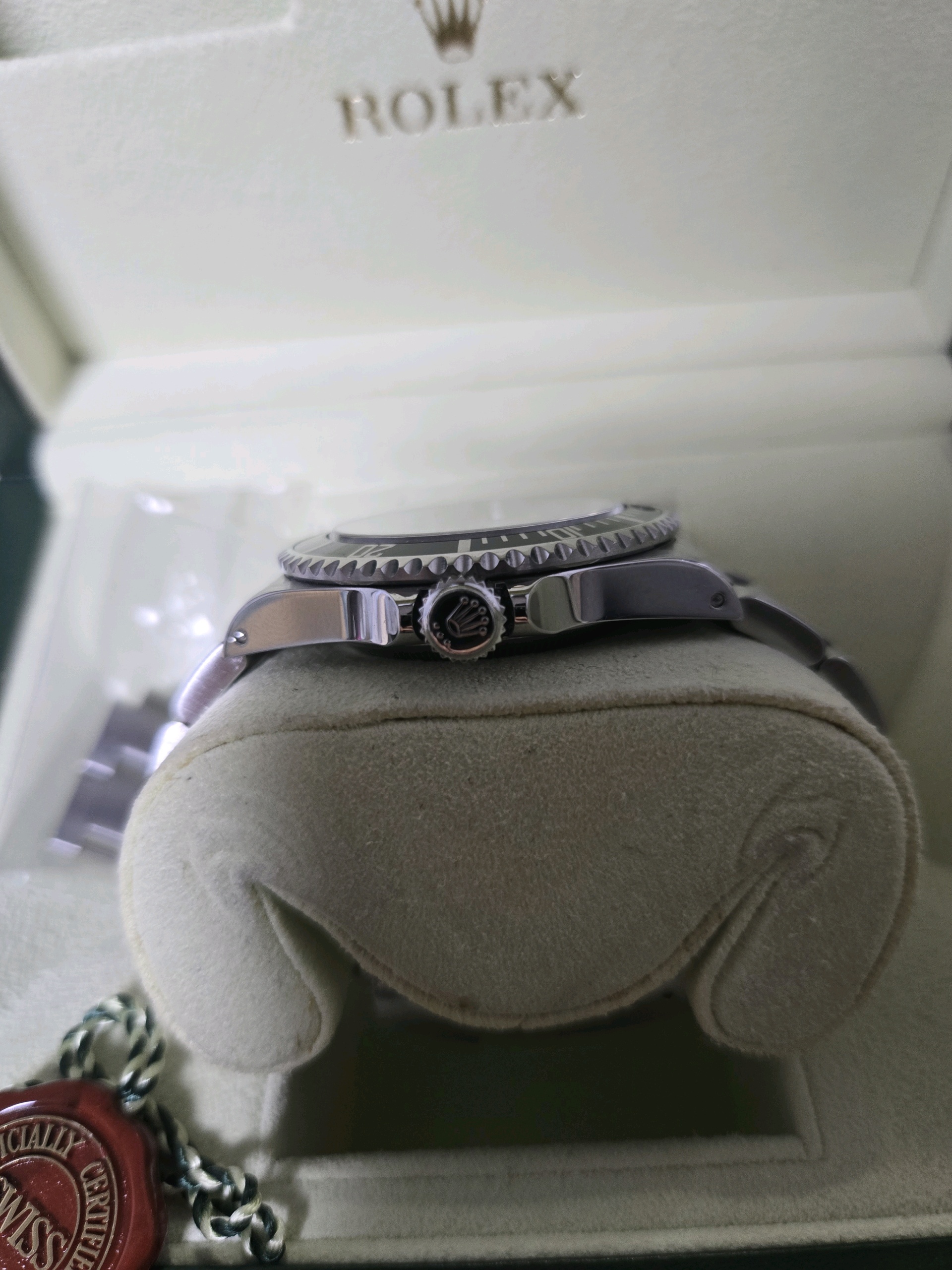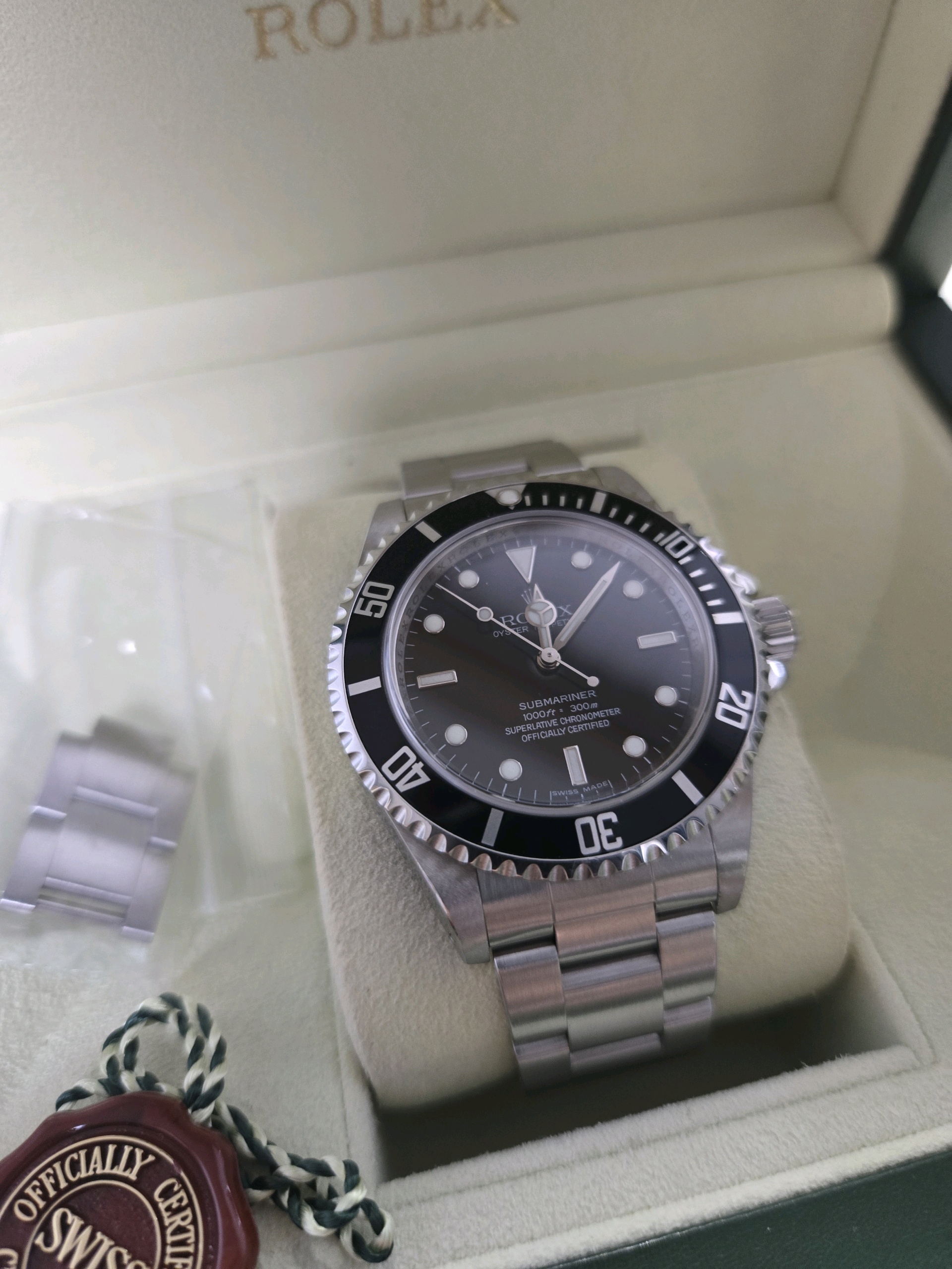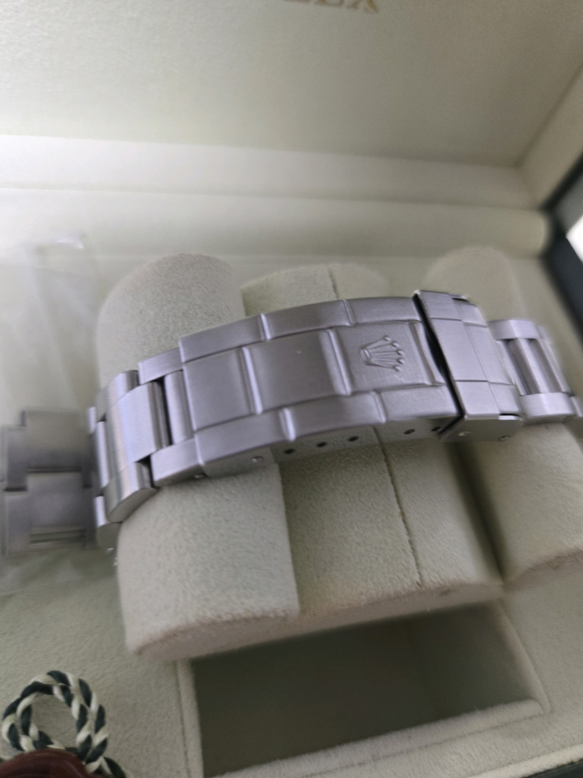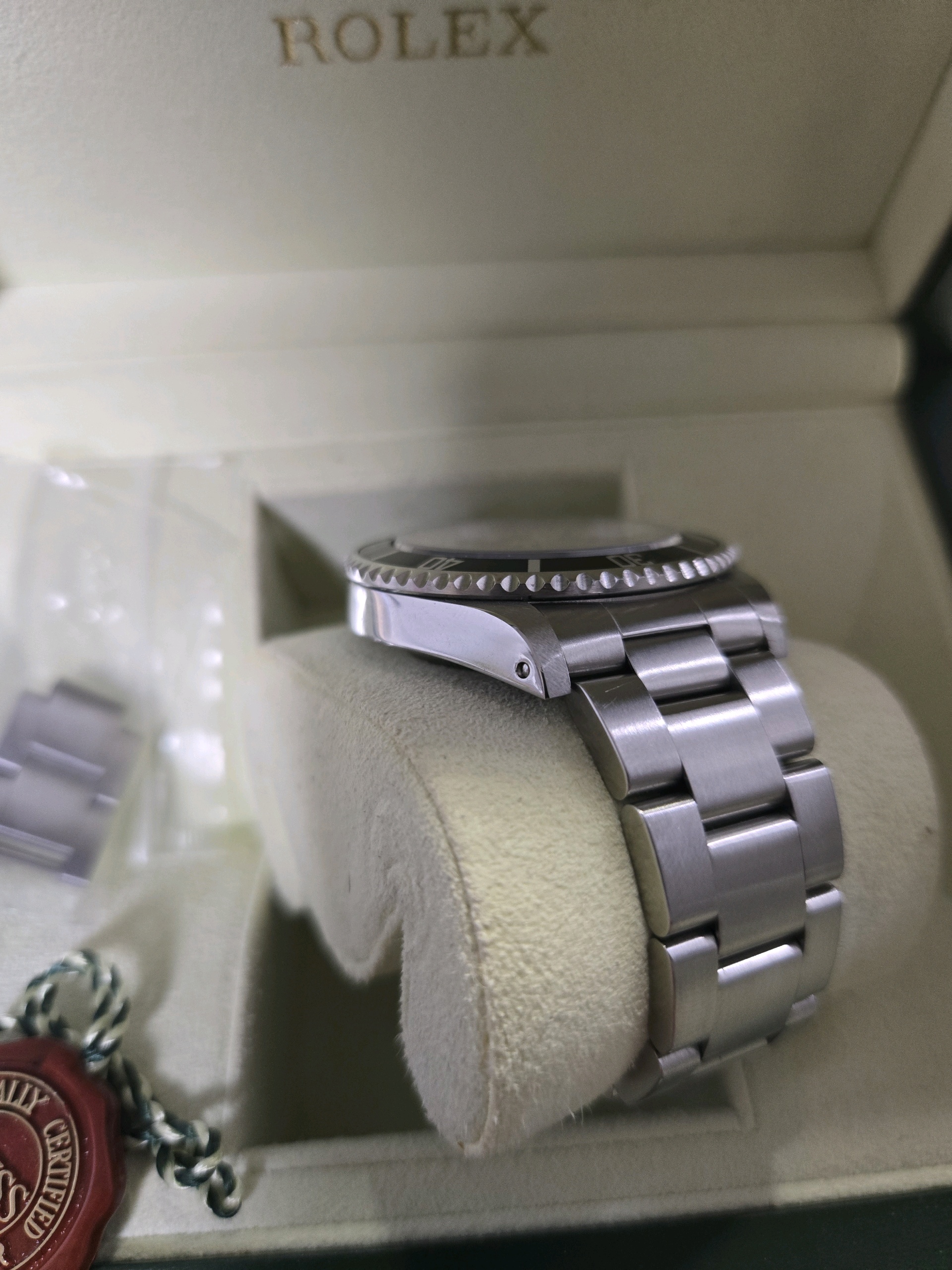 it has only minor sign of wear and comes with original box, papers, extra links, and additional service warranty card issued by RSC