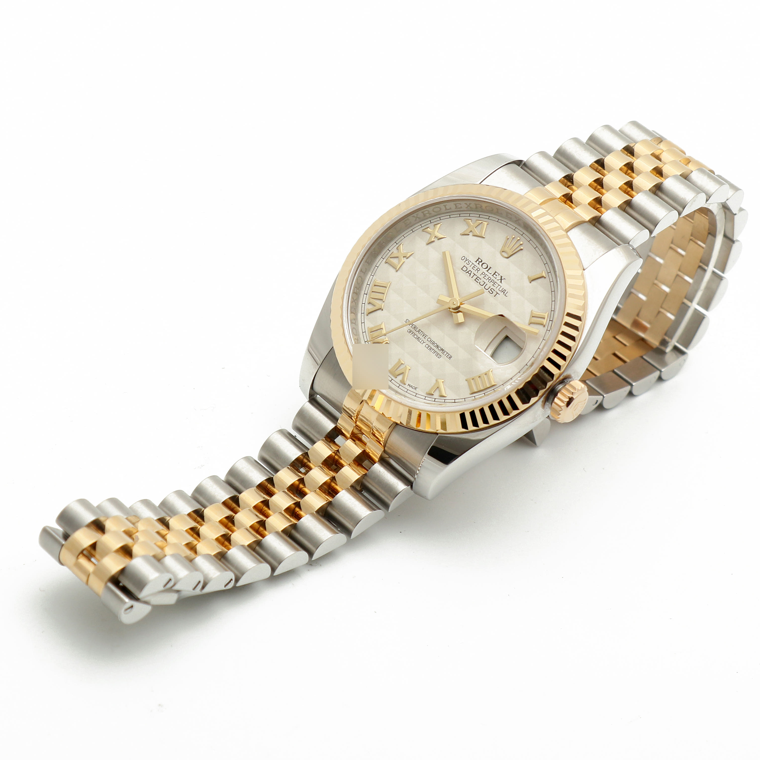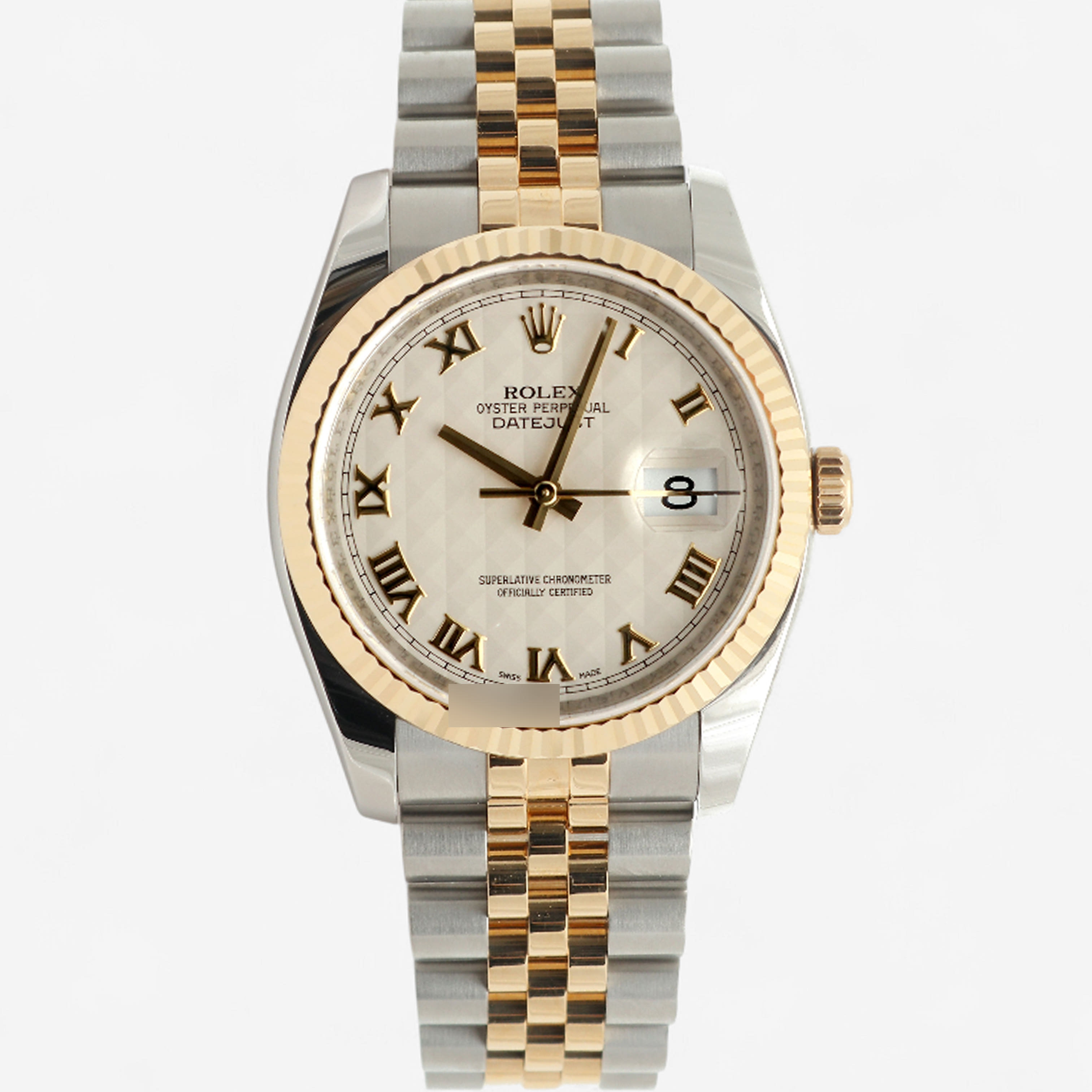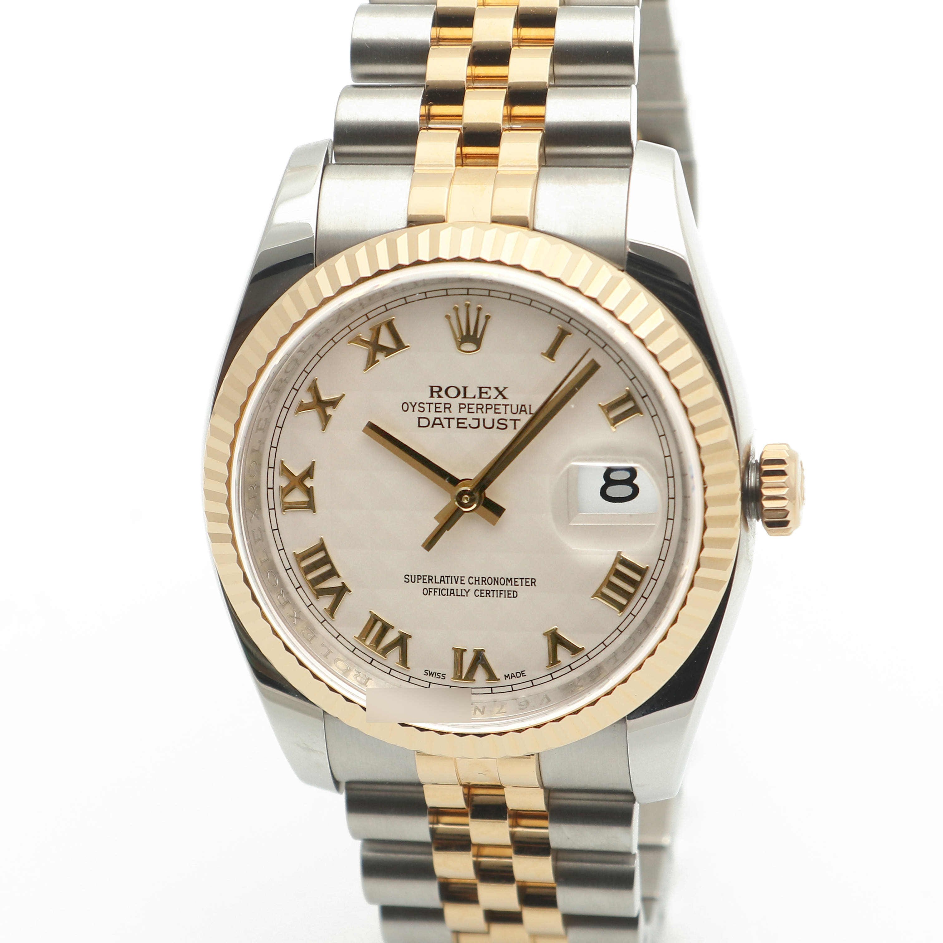 116233-IVPYROMJUB3,Rolex Datejust 36 116233 steel yellow gold two tone pyramid motif roman numerals fluted jubilee,Datejust36,116233-IVPRFJ,데이트저스트,데이저스트,데이트,옐로우골드,옐골,롤레조,콤비,데잇저스트,데잇,예물시계추천,쥬빌리,쥬빌리브레이슬릿,어버이날선물,40대추천,아이보리,스테인레스스틸+옐로우골드,사파이어크리스탈,36mm,로만,스테인레스 스틸,옐로우 골드,스테인레스 스틸 + 옐로우 골드,쥬빌리 브레이슬릿,사파이어 크리스탈,Datejust 36,Datejust,Rolex,롤렉스,모티프,스테인리스 스틸,스테인리스 스틸 + 옐로우 골드,Yellow gold,Hidden folding clasp,데이저스트 36,피라미드 모티프,Date / roman numeral indices,웨딩,스테인리스 스틸, 옐로우 골드