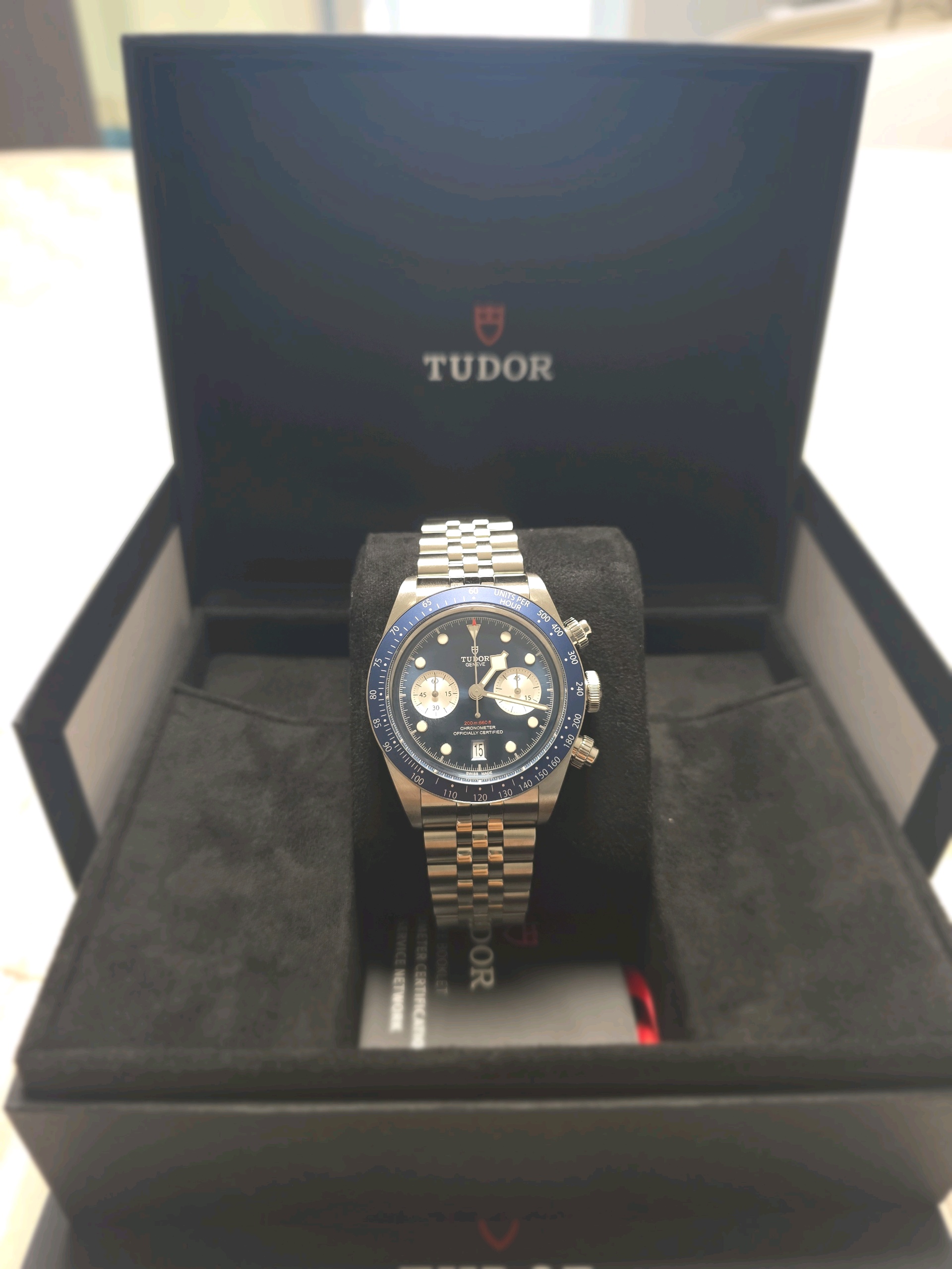 M79360B-0002,튜더 블랙 베이 크로노 크로노그래프 블루 스틸 41mm 41미리 76360B,Tudor Black Bay Chrono Chronograph Blue 41mm 79360B,블루,사파이어 크리스탈,41mm,셀프와인딩,Stainless steel,Folding clasp,Date,chronograph subdial,small seconds / applied hour markers,Black Bay Chrono,Tudor,튜더,셀프 와인딩,블랙 베이 크로노,.블루,도트,폴딩 클라스프,데이트,크로노그래프,22mm,원형,레이싱,남성용,Date, chronograph subdial, small seconds / applied hour markers