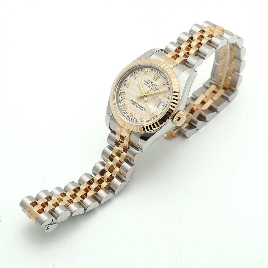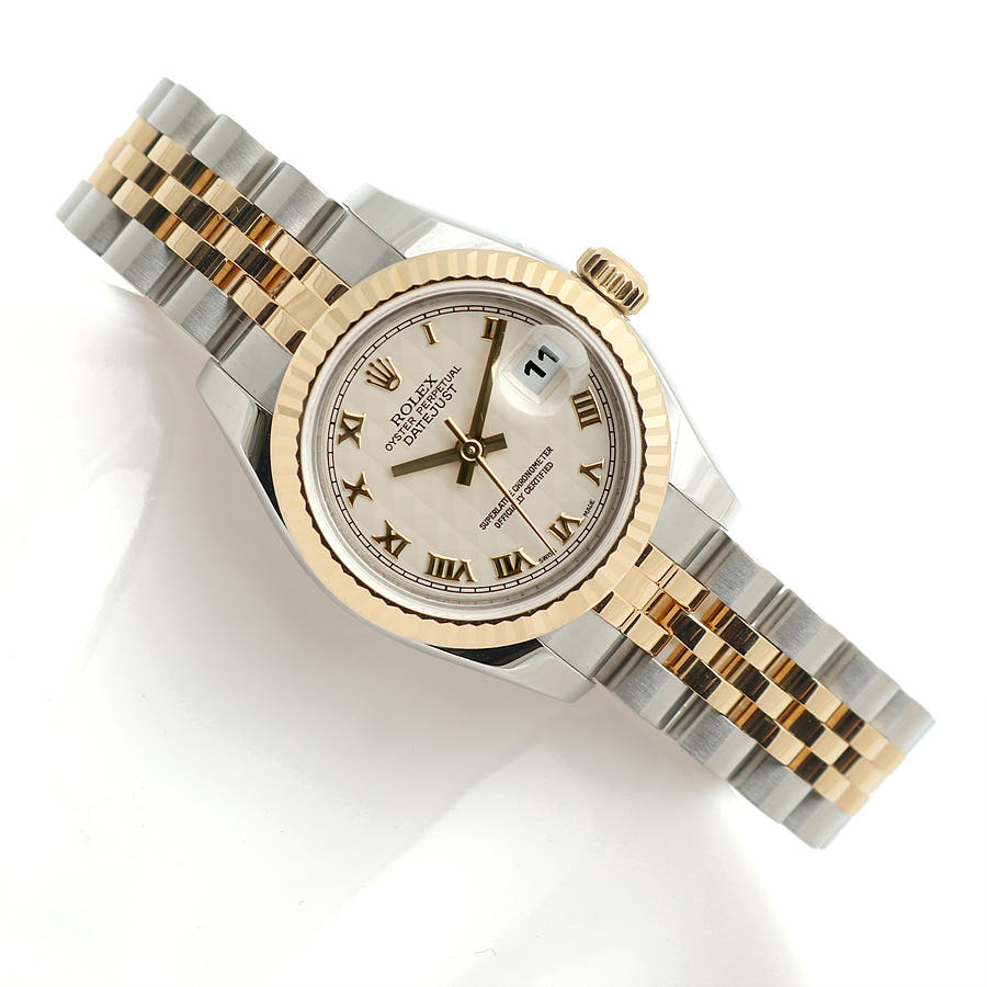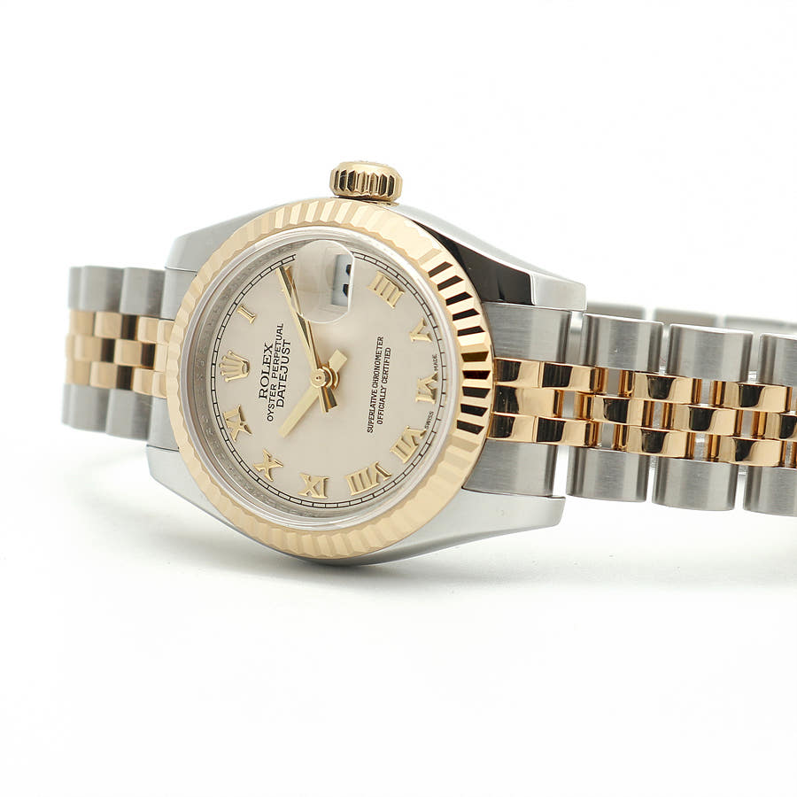 179173-IVPYROMJUB,롤렉스 로렉스 레이디 데이트저스트 데이저스트 26 179173 스틸 옐로우 골드 옐골 스틸 투톤 여성 아이보리 피라미드 로만 쥬빌리,Rolex lady datejust 26 179173 steel yellow gold steel two tone ivory pyarmid roman,로만,Lady-Datejust 26,레이디-데이트저스트 26,Lady-Datejust,Rolex,롤렉스,셀프 와인딩,Yellow gold,Hidden folding clasp,Date / roman numeral indices