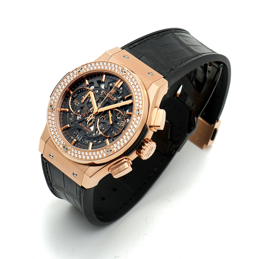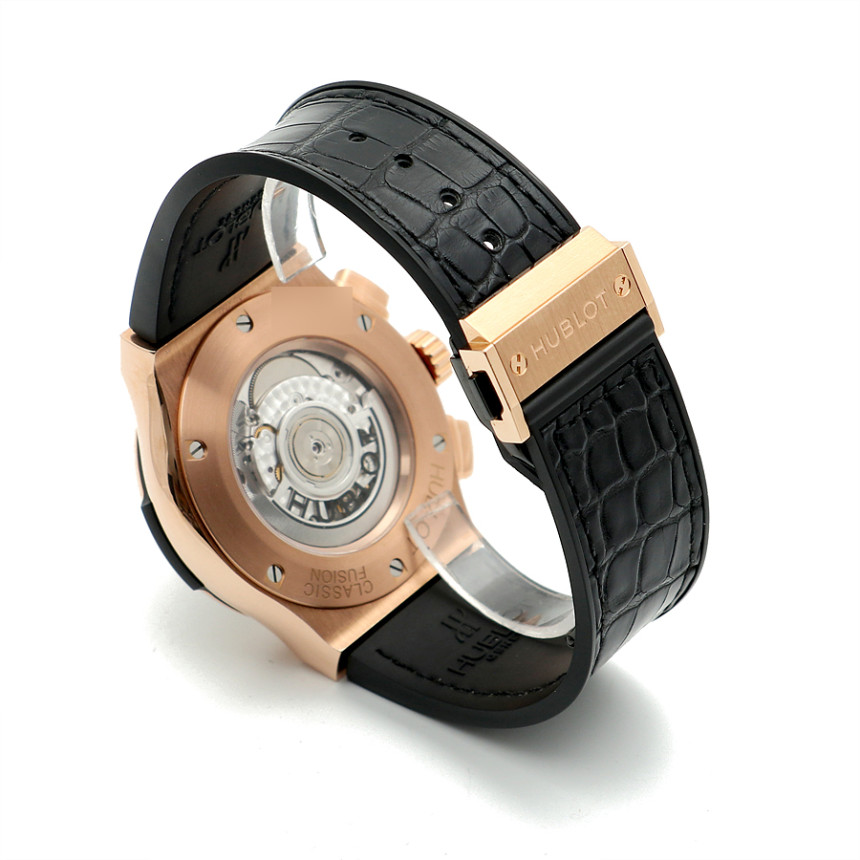 위블로 클래식 퓨전 에어로퓨전 에어로 퓨전 킹 골드 로즈 골드 로골 금통 스트랩,525.OX.0180.LR.1104,로즈 골드,가죽 인레이 러버,스트랩,45mm,셀프 와인딩,Cal. HUB1155,Switzerland,Rose gold,Deployant folding buckle,Date,chronograph subdial,small seconds / baton indices,Classic Fusion Aerofusion King Gold Diamonds,클래식 퓨전 에어로퓨전 킹 골드 다이아몬드,Classic Fusion,Hublot,위블로,스켈레톤,투명 케이스백,Date, chronograph subdial, small seconds / baton indices