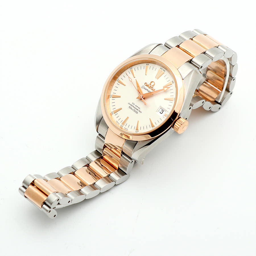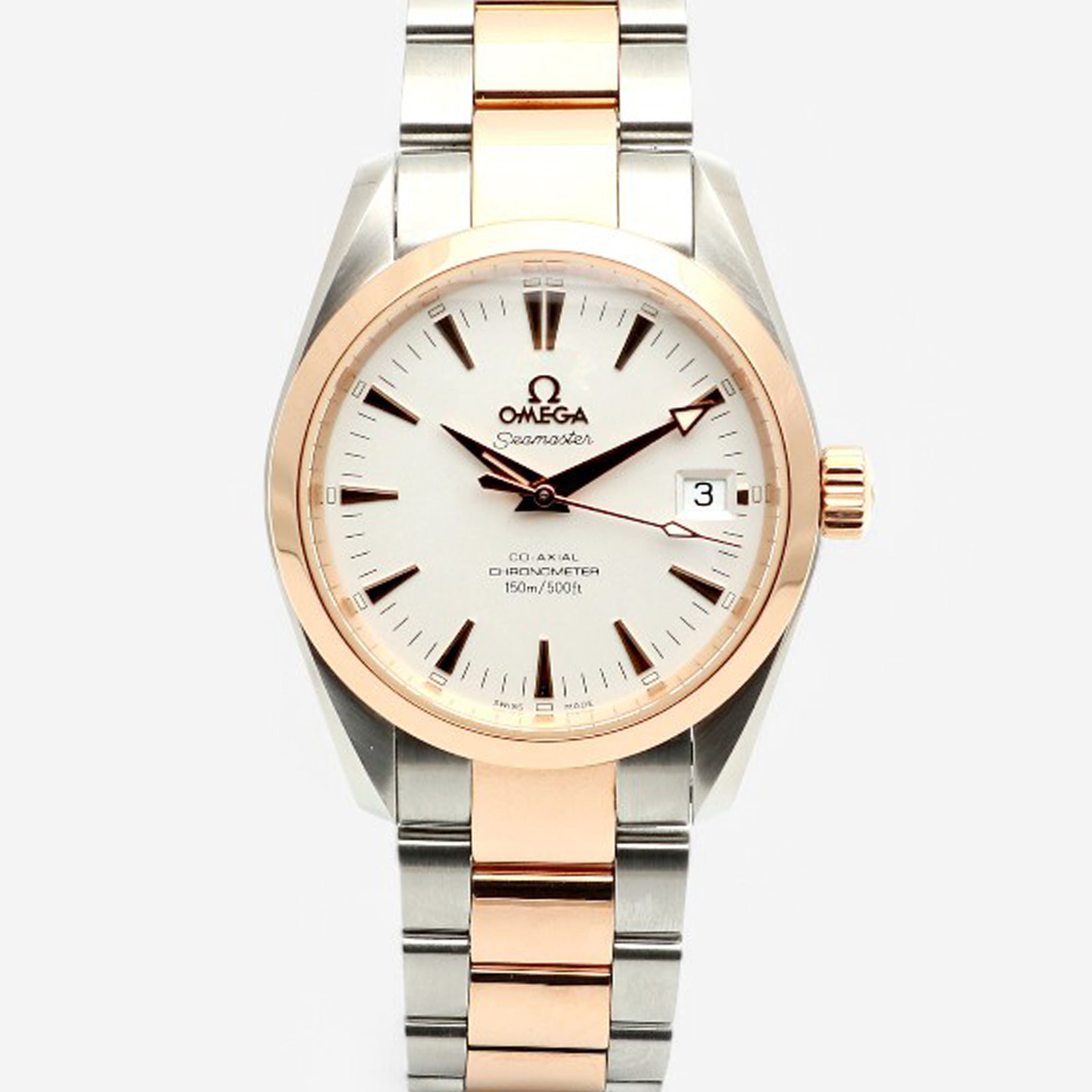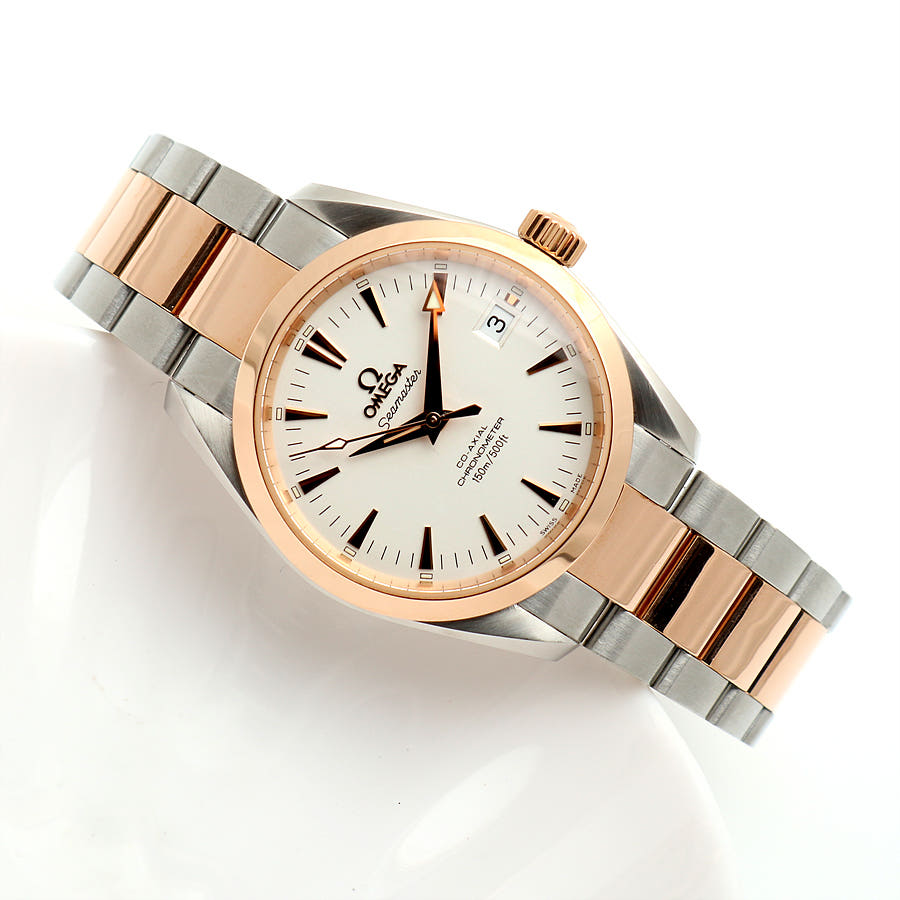 2304.30.00,2304.30,Omega Seamaster Aqua Terra 150M 2304.30 36mm 36.2mm white steel rose gold steel two tone automatic self-winding selfwinding,오메가 씨마스터 아쿠아 테라 아쿠아테라 150M 2304.30 36mm 36.2mm 화이트 흰판 스틸 로즈 골드 로즈골드 스틸 투톤 오토매틱 오토 셀프와인딩 셀프 와인딩,화이트,스테인리스 스틸,로즈 골드,브레이슬릿,36.2mm,셀프 와인딩,Cal. 2500,Switzerland,Rose gold,Folding clasp,Date / applied dagger indices,Aqua Terra,아쿠아 테라,Seamaster,Omega,오메가,스테인리스 스틸, 로즈 골드