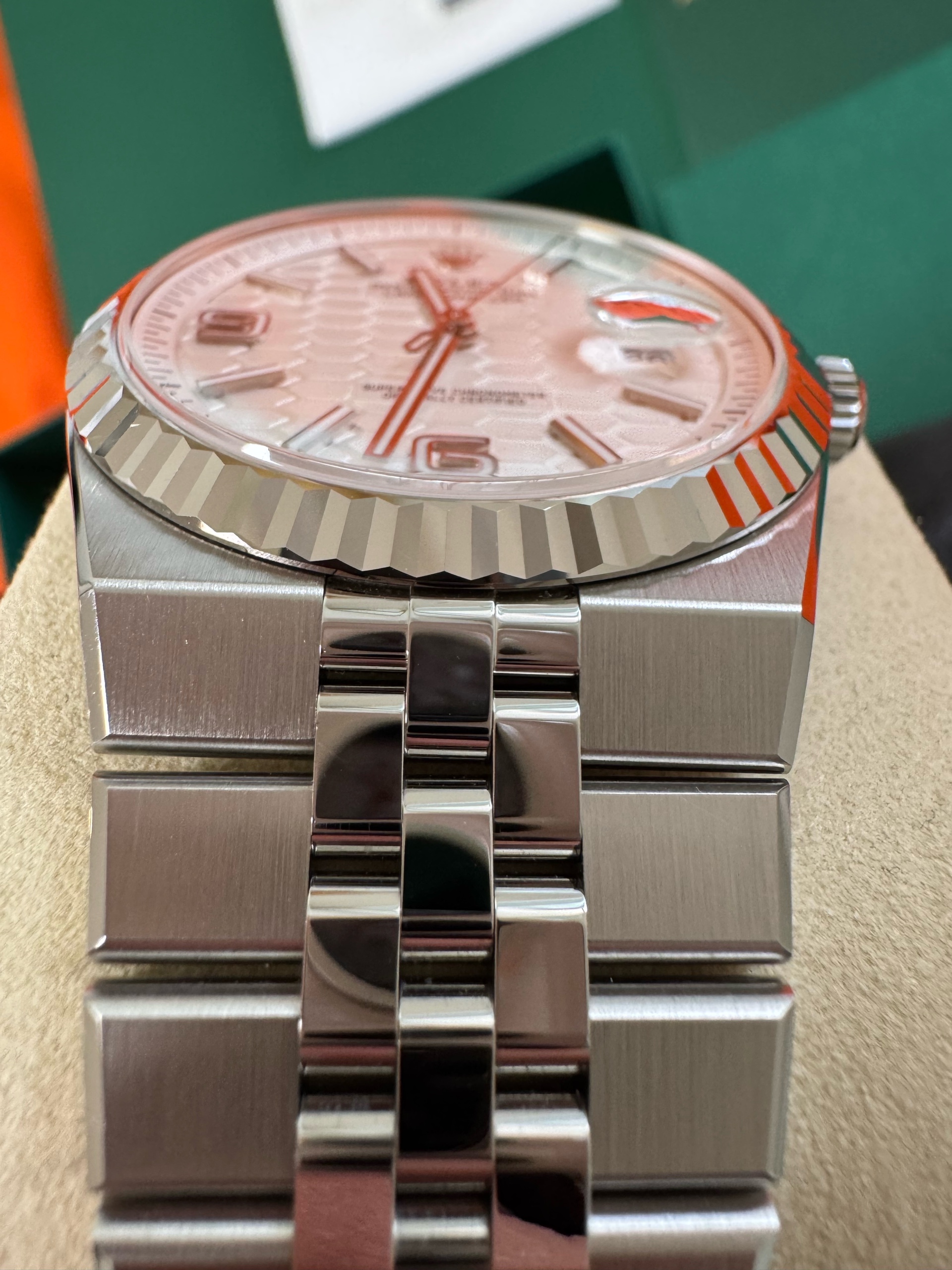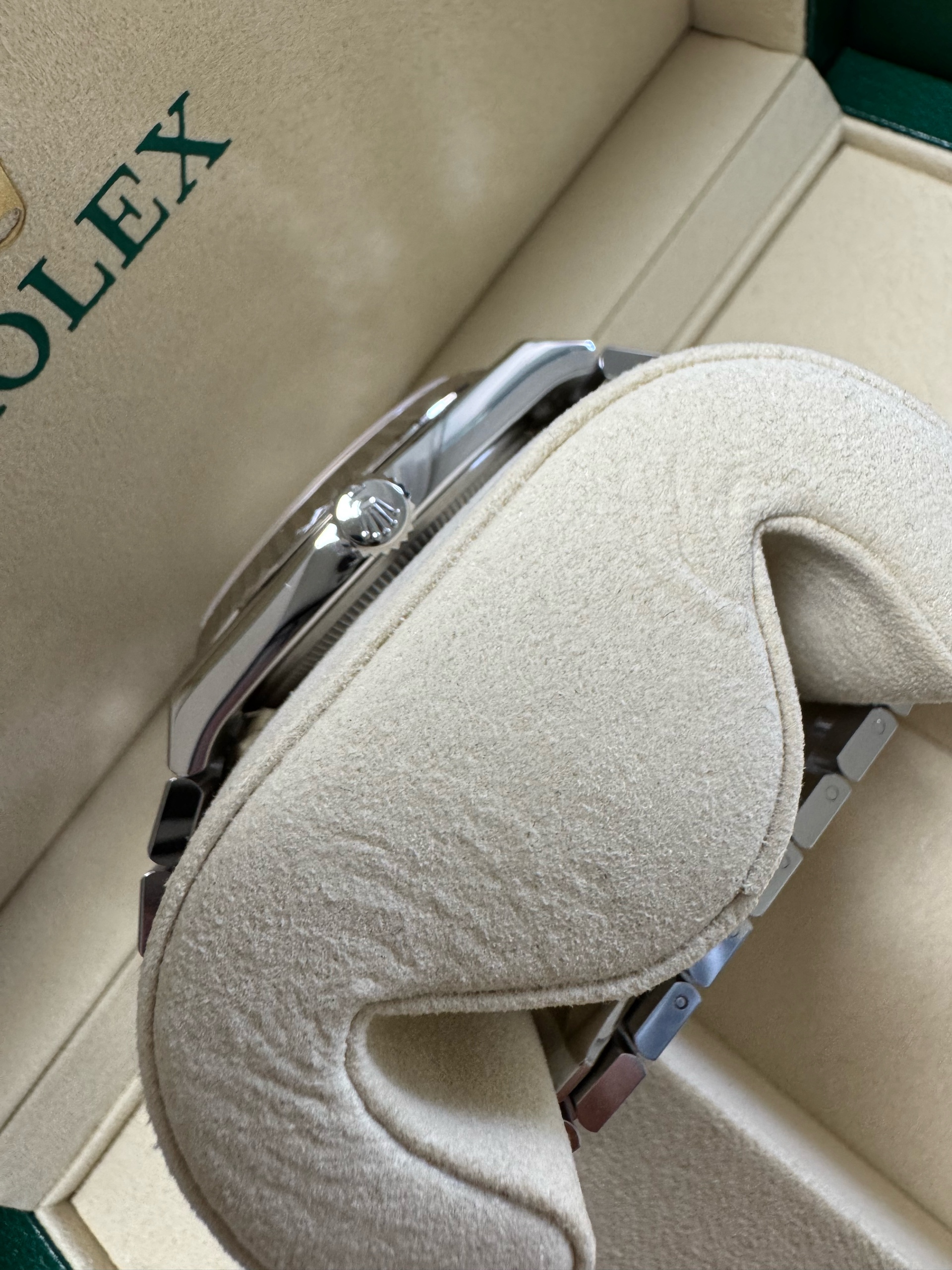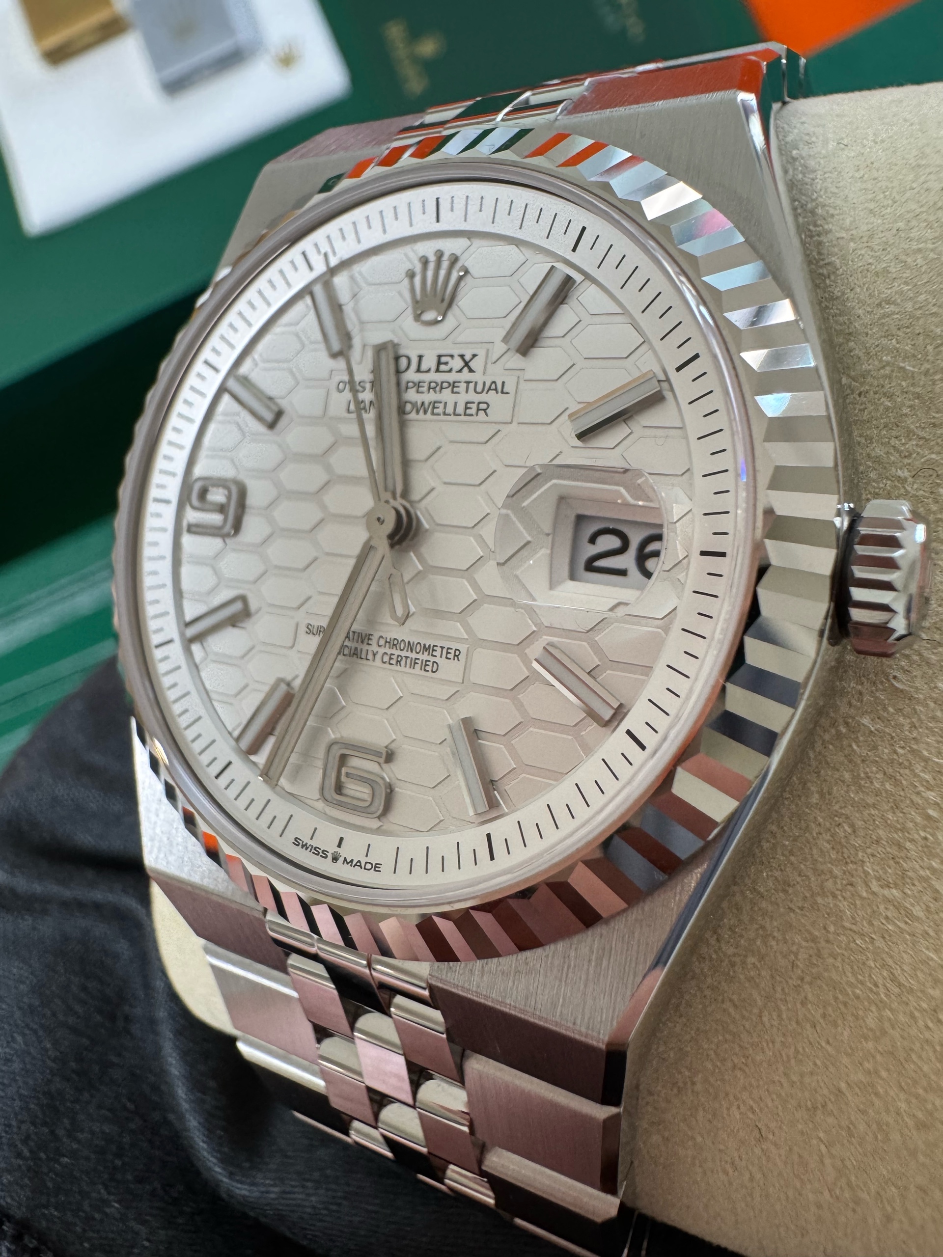 M127334-0001,127334,Rolex Land-Dweller land dweller 40 steel intense white steel,롤렉스 랜드드웰러 랜드 드웰러 랜드-드웰러 40 스틸 인텐스 화이트 스틸,롤렉스 일체형,인텐스 화이트,허니콤 모티프,스테인리스 스틸,화이트 골드,플랫 쥬빌리 브레이슬릿,40mm,플루티드,셀프 와인딩,Cal.7135,Stainless steel,Hidden folding clasp,Date / baton & arabic numeral indices,Land-Dweller 40,랜드‑드웰러 40,Land-Dweller,Rolex,롤렉스,Cal. 7135,.화이트,바,패턴,폴딩 클라스프,데이트,투명 케이스백,원형,클래식,남성용,스테인리스 스틸, 화이트 골드